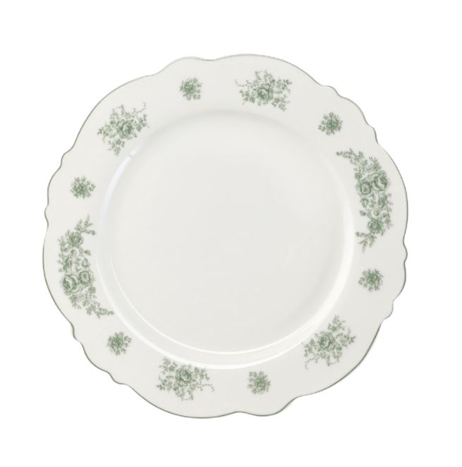 Сервируйте ваши любимые блюда на этой элегантной белой фарфоровой тарелке, украшенной изысканным зелёным цветочным узором. Диаметр тарелки 26.5 см, подходит для подачи основных блюд. Изготовлена из высококачественного нового костяного фарфора. Легко ухаживать, можно использовать в микроволновой печи.