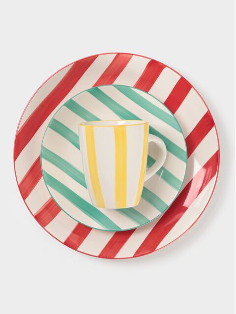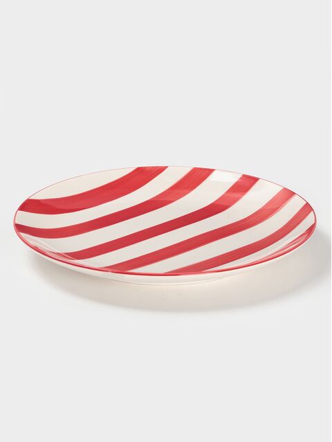 Керамическая тарелка «Райе» с полосатым узором — это сочетание функциональности и эстетики. Красный цвет придаёт насыщенности образу, а деколь добавляет изысканности дизайну. Плоская форма диаметром 26,5 см делает её универсальной для подачи первых и вторых блюд.