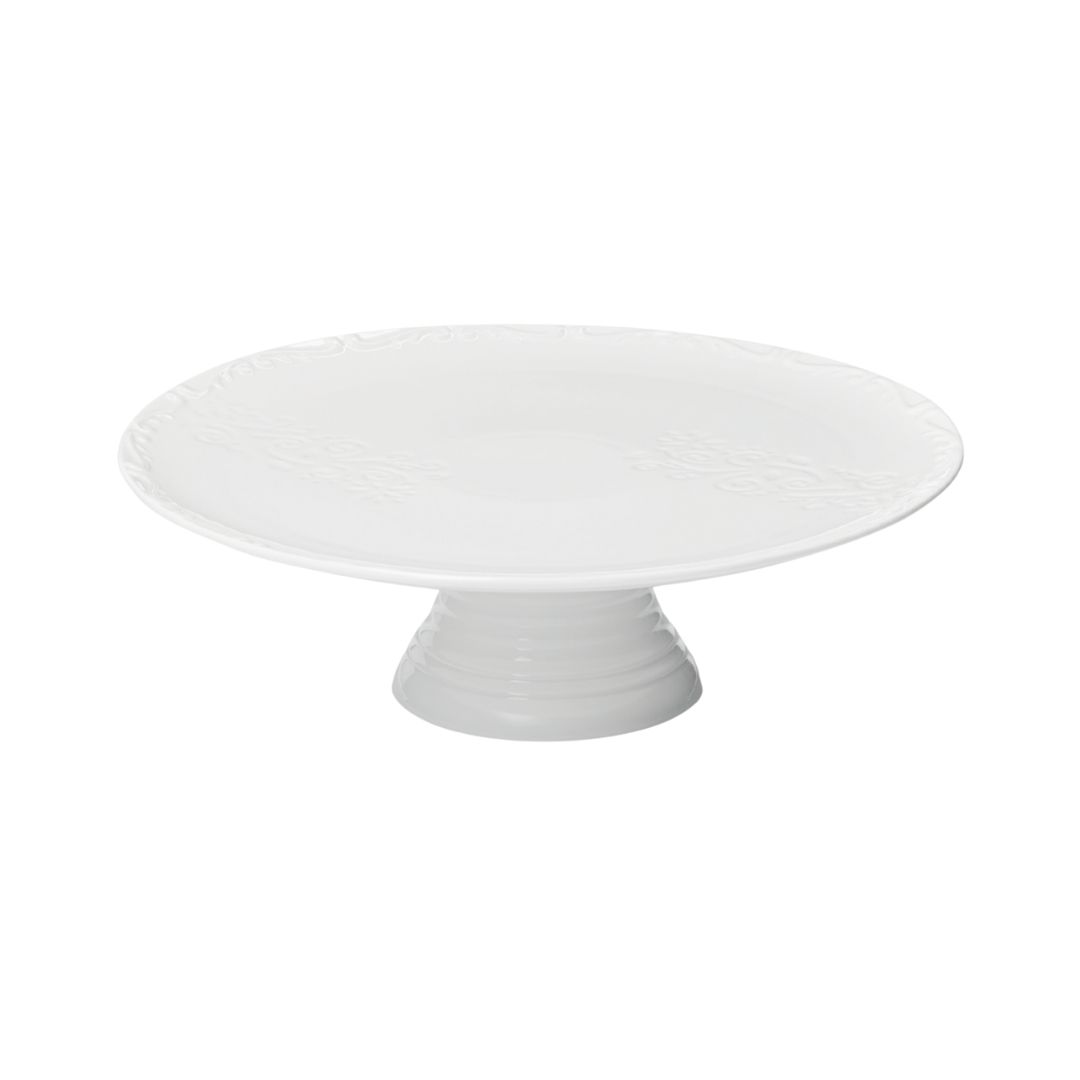 Тортовница выполнена из высококачественного фарфора, что обеспечивает ей долговечность и устойчивость к повреждениям. Она отличается рельефным дизайном, который придает изделию особую изысканность, а отсутствие рисунка подчеркивает чистоту и простоту линий.