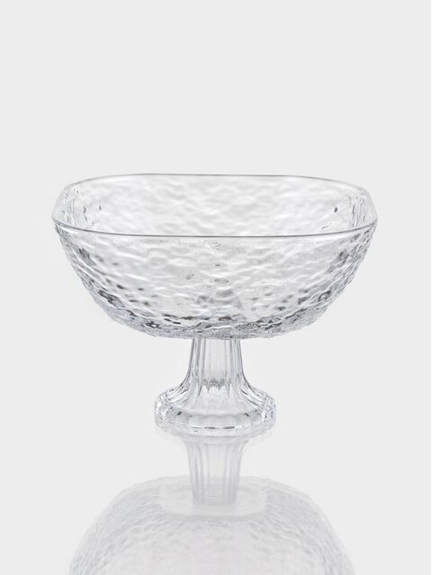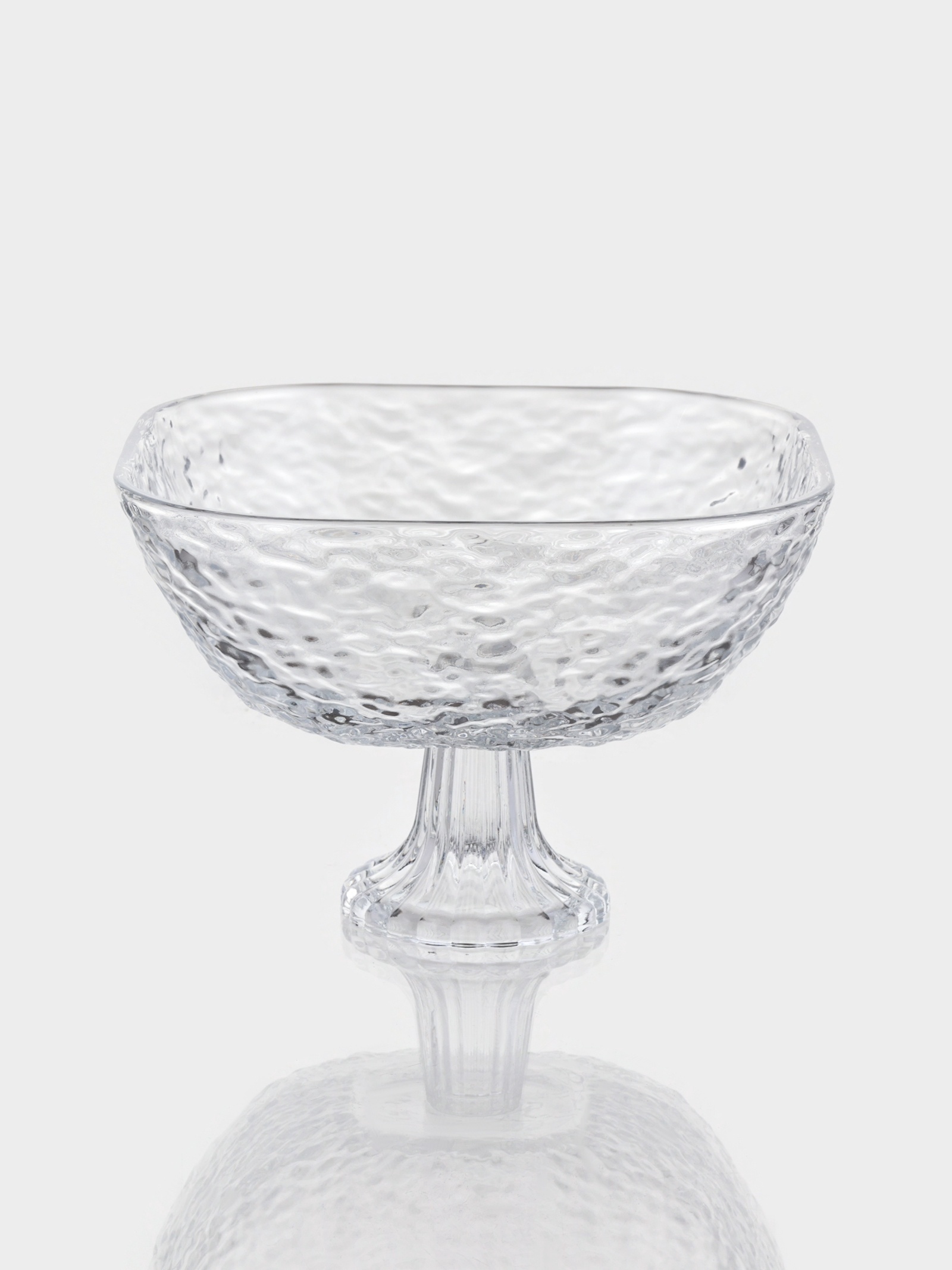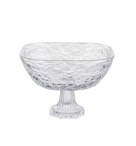 Свежесть на виду — порядок на столе! Фруктовница на ножке — квадратная стеклянная ваза с рельефной поверхностью для ягод, нарезанных фруктов или десертов. Её приподнятая форма улучшает циркуляцию воздуха, а прозрачность делает содержимое частью интерьера.