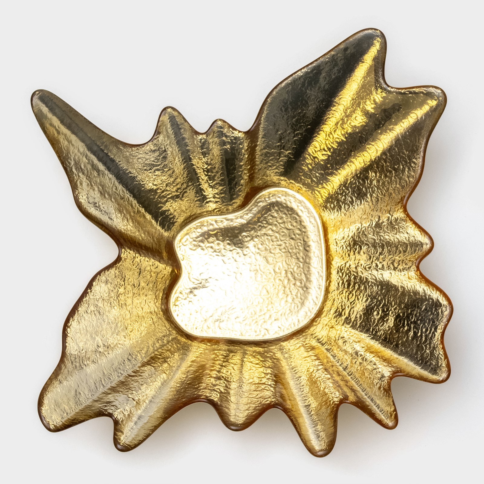 Тарелка сервировочная «Рени» изготовлена из качественного и прочного стекла. Посуда имеет необычную форму, красивый рельеф и отводку золотом по краю. Такая тарелка станет изюминкой сервировки и украсит праздник.