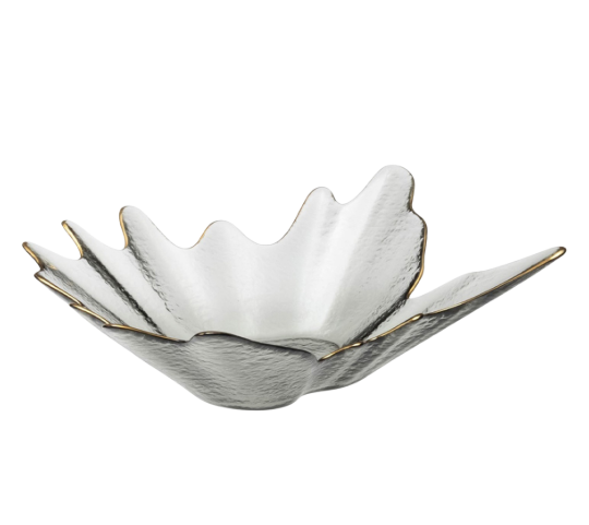 Тарелка сервировочная «Рени» изготовлена из качественного и прочного стекла. Посуда имеет необычную форму, красивый рельеф и отводку золотом по краю. Такая тарелка станет изюминкой сервировки и украсит праздник.
