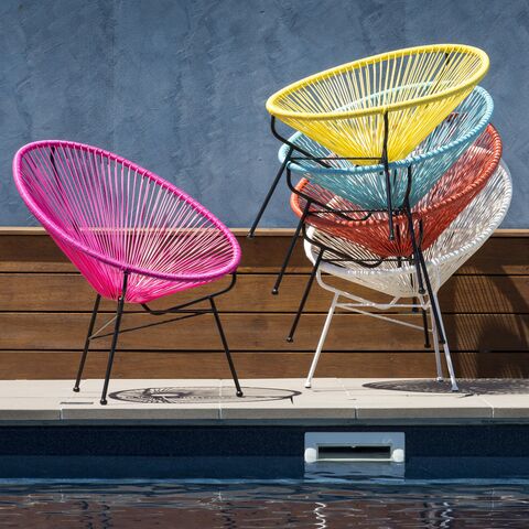 Садовое кресло ACAPULCO/Акапулько подойдет для обустройства балкона, дачной веранды или беседки, установки в зоне отдыха административного учреждения. Модель отличается оригинальным исполнением и представляет собой оплетенный яркими нитями корпус. Модель можно дополнить контрастной подушкой для большего комфорта. Размещается на трех ножках, обеспечивающих устойчивость. Стул можно дополнить другими элементами из той же коллекции производителя. При необходимости легко штабелируется и не занимает много места при хранении внутри помещения или хозяйственном блоке.