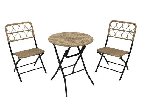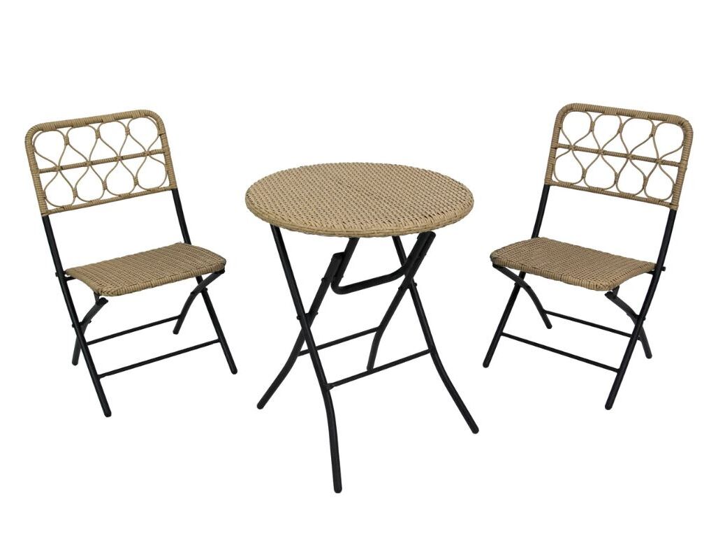 В комплект поставки входят один складной стол и два складных стула. Сборка проста.