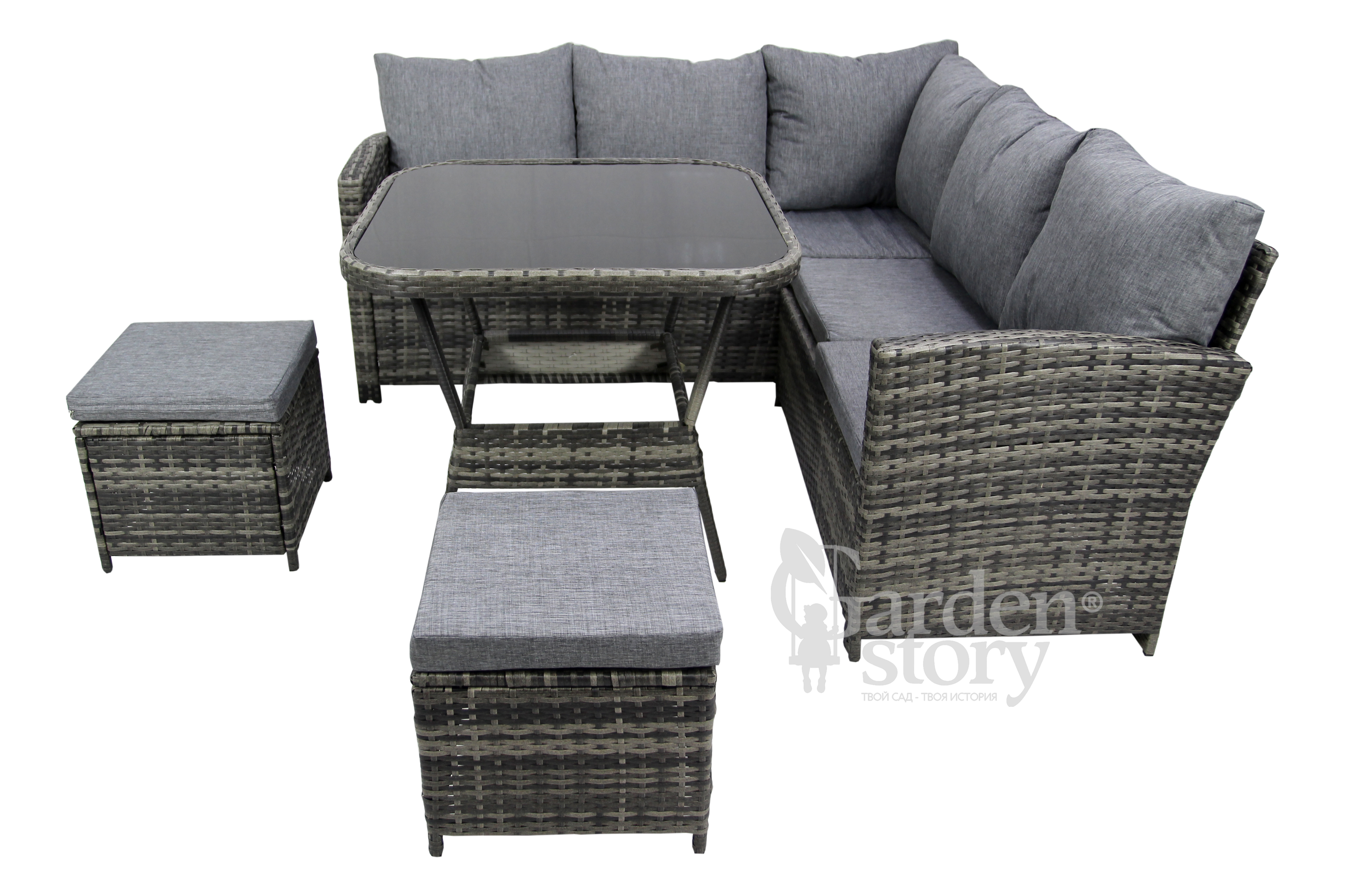 АРУБА, набор садовой мебели, модульный, искусственный ротанг, серый