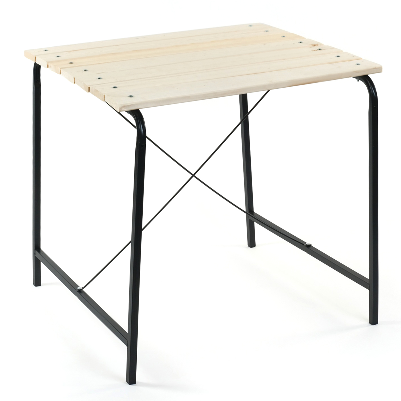 Легкий стол из натуральной древесины, можно декорировать цветом. Установив 2 компактных стола рядом Вы увеличите пространство на компанию.