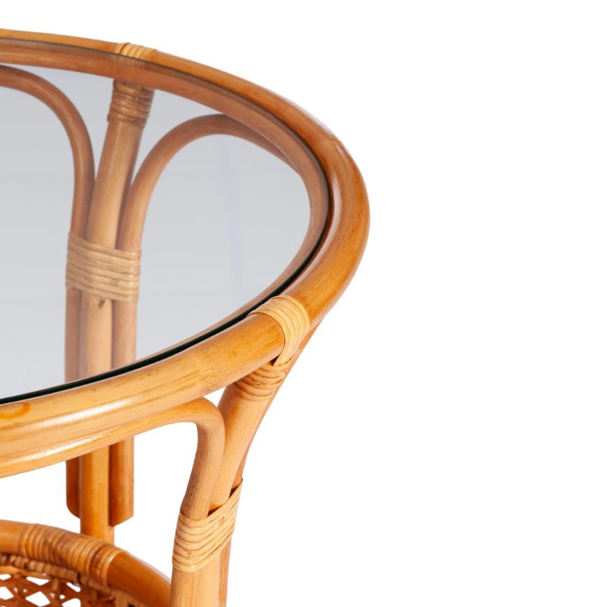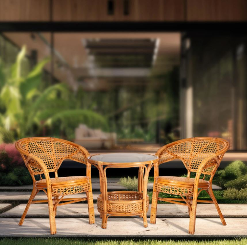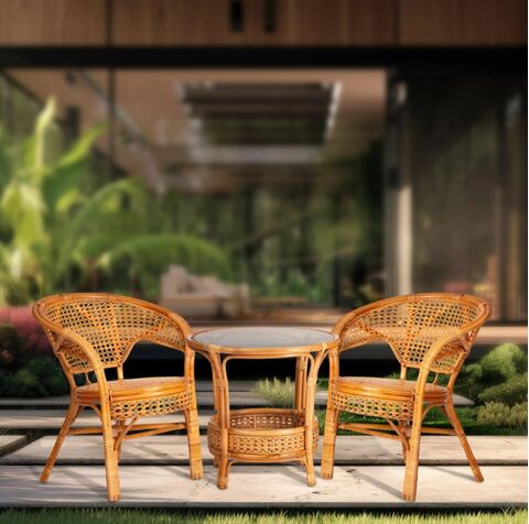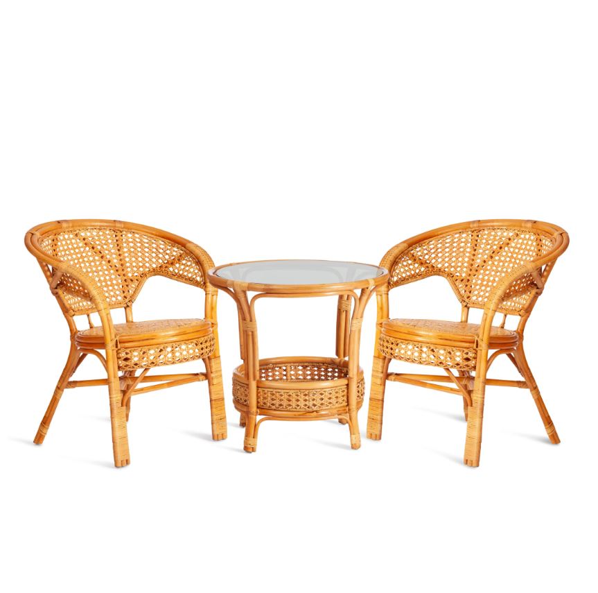 Комплект Pelangi/Пеланги из натурального ротанга – это произведение искусства, созданное вручную мастерами с многолетним опытом. Метод выгибания и плетения ротанга делает каждый предмет неповторимым и уникальным. Ротанг – это натуральный материал, который отличается не только прочностью и долговечностью, но и экологичностью. Он не содержит вредных веществ и прекрасно вписывается в любой интерьер. Комплект из ротанга – это идеальное решение для тех, кто ценит комфорт и уют. Он лёгкий и мобильный, его легко перемещать по комнате. Комплект поставляется в собранном виде, что значительно упрощает его транспортировку. Комплект состоит из 2 кресел без подушек и стола со стеклом.