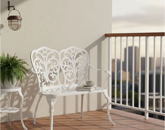 Скамья Symphonie/Симфония — элегантность прованса в вашем саду Изящная садовая скамья Symphonie (Симфония) станет настоящим украшением приусадебного участка, террасы или уютного уголка на балконе. Лёгкий французский шарм и декоративная художественная ковка придают модели утончённость и особую атмосферу романтики. Плавные витиеватые изгибы кованых узоров создают неповторимый облик изделия, подчеркивая его визуальную лёгкость, грациозность и изысканность. Благодаря гармоничным пропорциям скамья выглядит элегантно и органично вписывается в ландшафтный дизайн в классическом или прованском стиле. Удобная эргономичная спинка и изящные подлокотники обеспечивают комфортный отдых на свежем воздухе. Это идеальное место для неспешных бесед, чтения книги или наслаждения природой. Скамья изготовлена из литого алюминия — прочного и долговечного материала, устойчивого к коррозии, перепадам температур и повышенной влажности. Конструкция выдерживает значительные нагрузки и не требует сложного ухода, сохраняя первоначальный внешний вид на долгие годы. Преимущества скамьи Symphonie/Симфония: прочный каркас из литого алюминия, устойчивость к влаге и температурным перепадам, изящный дизайн в стиле прованс, удобная спинка и подлокотники, долговечность и простота ухода. Садовая скамья Symphonie/Симфония — это сочетание эстетики, надежности и комфорта для вашего загородного дома или дачи. Модель поставляется в разобранном виде, что обеспечивает удобство транспортировки и быструю сборку.