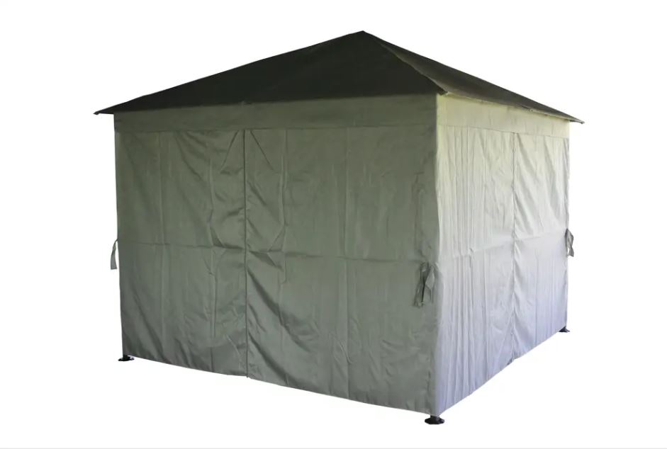 Дополнительно : высота по коньку 2,55м, высота стоек 2м, высота входного проема 1,85м. Крыша Oxford 420D. Защита от насекомых: пологи из специальной сетки, м/э . Все крепления металл на сварных соединениях, на ножках подножники с отверстиями с анкерами.