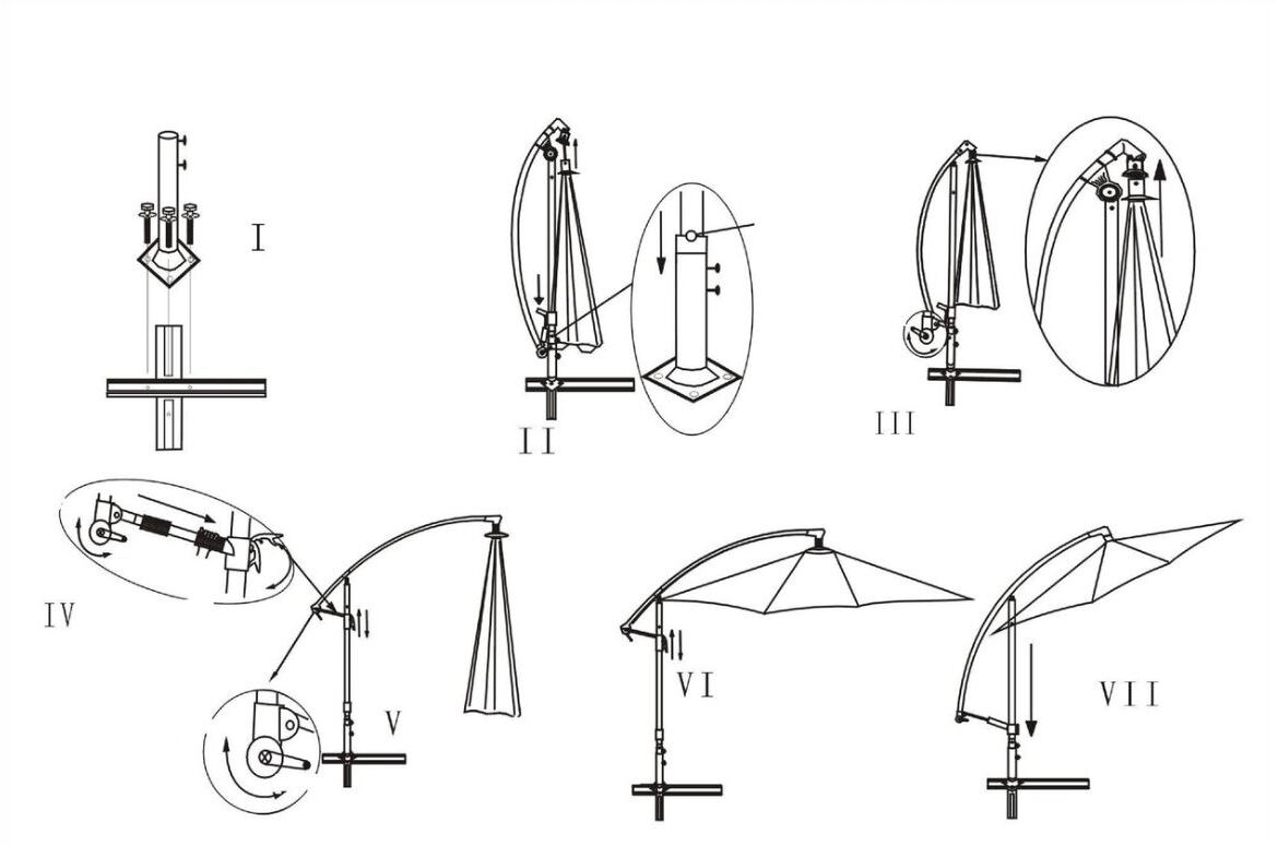Ветровая нагрузка зонта - 3 класс (3,4 - 5,4 м/с), высота в раскрытом виде - 240 см.