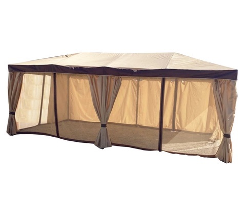 Состоит из шести столбов, тента, штор и противомоскитной сетки, м/э.