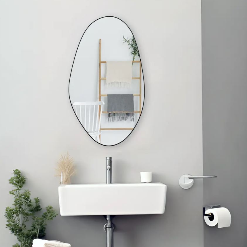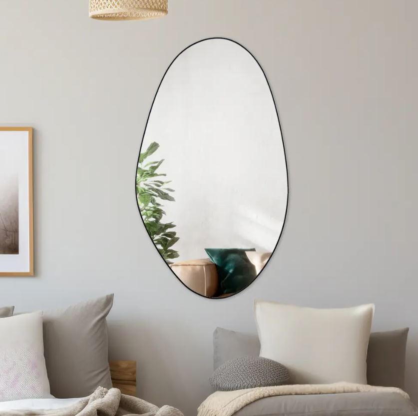 Функциональность. Зеркало не только визуально увеличивает пространство и добавляет свет, но и служит акцентом, который подчеркивает ваш индивидуальный стиль. Его асимметричная форма позволяет создавать интересные композиции на стене, что делает его идеальным выбором для тех, кто хочет выделиться и добавить оригинальности в свой интерьер. Зеркало можно разместить горизонтально и вертикально.