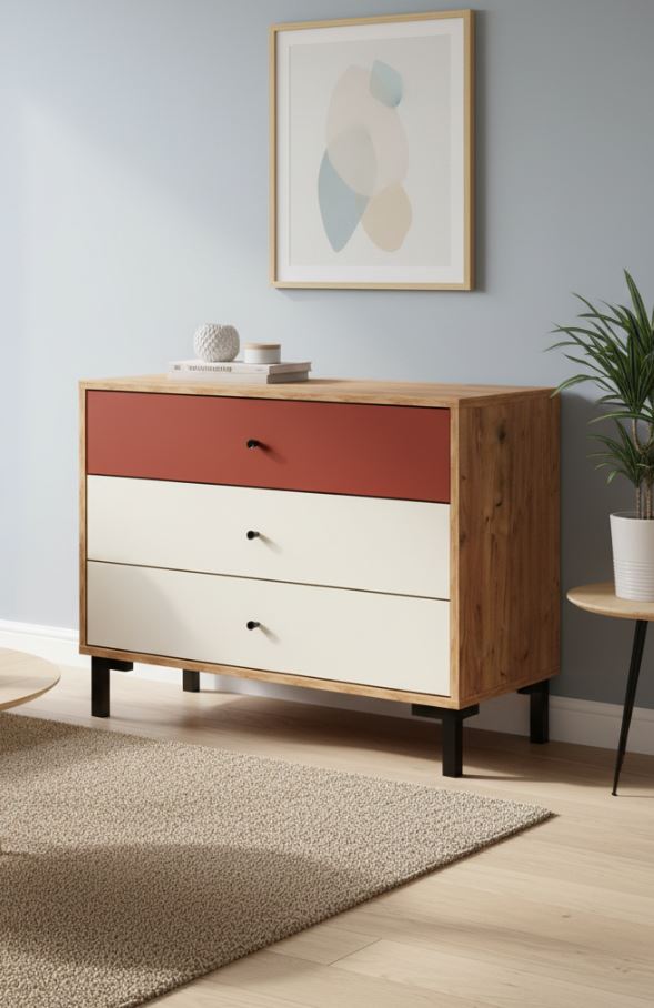 ДЖЭМ, комод, 3 ящика, дуб крафт табачный/сатин/терракот