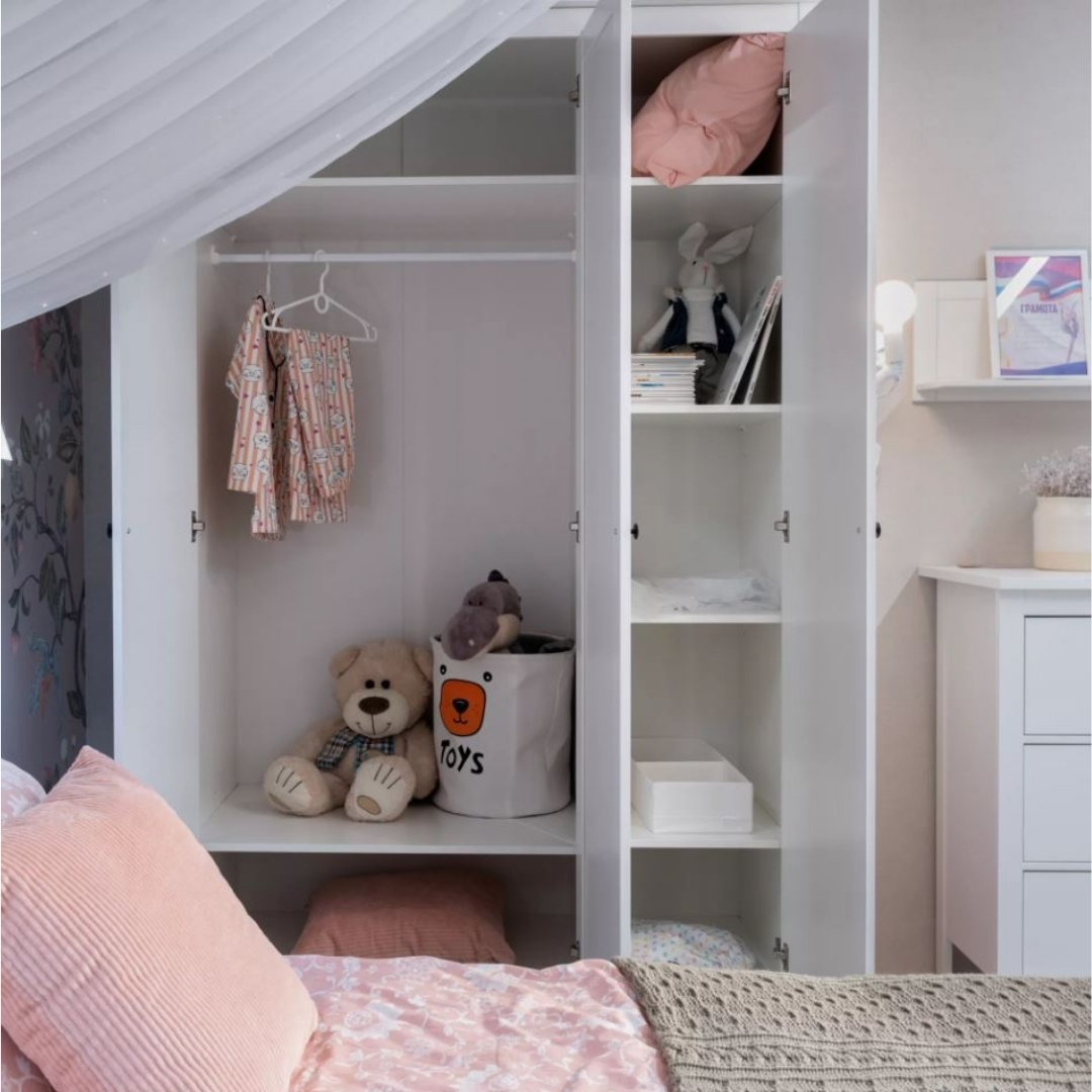САГА, шкаф платяной 3-дверный, с зеркалом, 132х64х215 см, белый