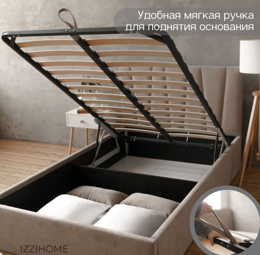 Кровать КЕЛЛИ — это идеальное сочетание стиля, комфорт и функциональности. Оснащенная современнным подъемным механизмом, она позволяет легко и удобно получать доступ к вместительному ящику для хранения, что делает её отличным выбором для тех, кто ценит порядок и практичность в спальне.