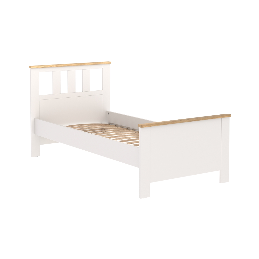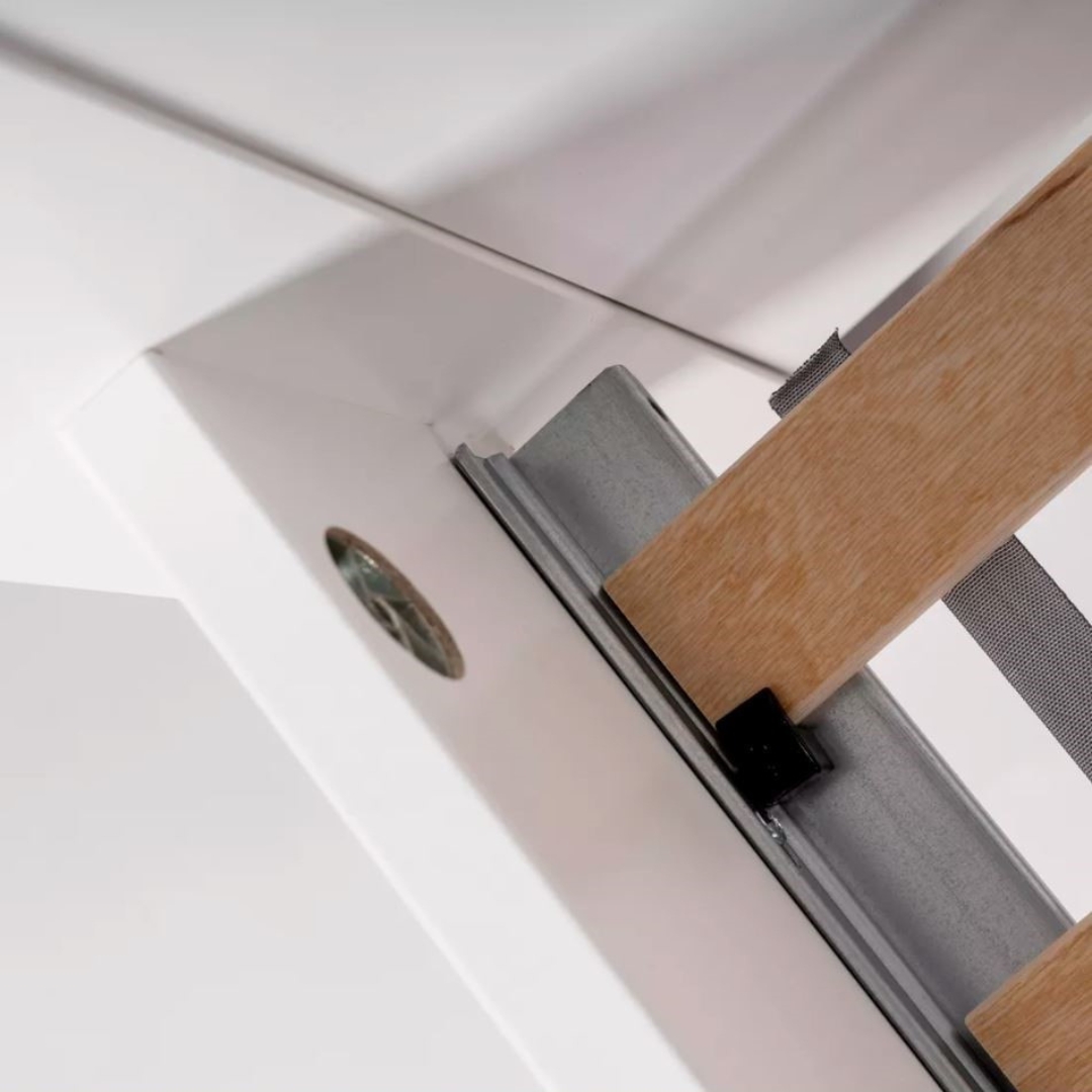 Оснащена ортопедическим реечным дном, которое обеспечивает оптимальную поддержку позвоночника во время сна. Опорные элементы изготовлены из прочного МДФ, что обеспечивает устойчивость и надежность конструкции на долгие годы.