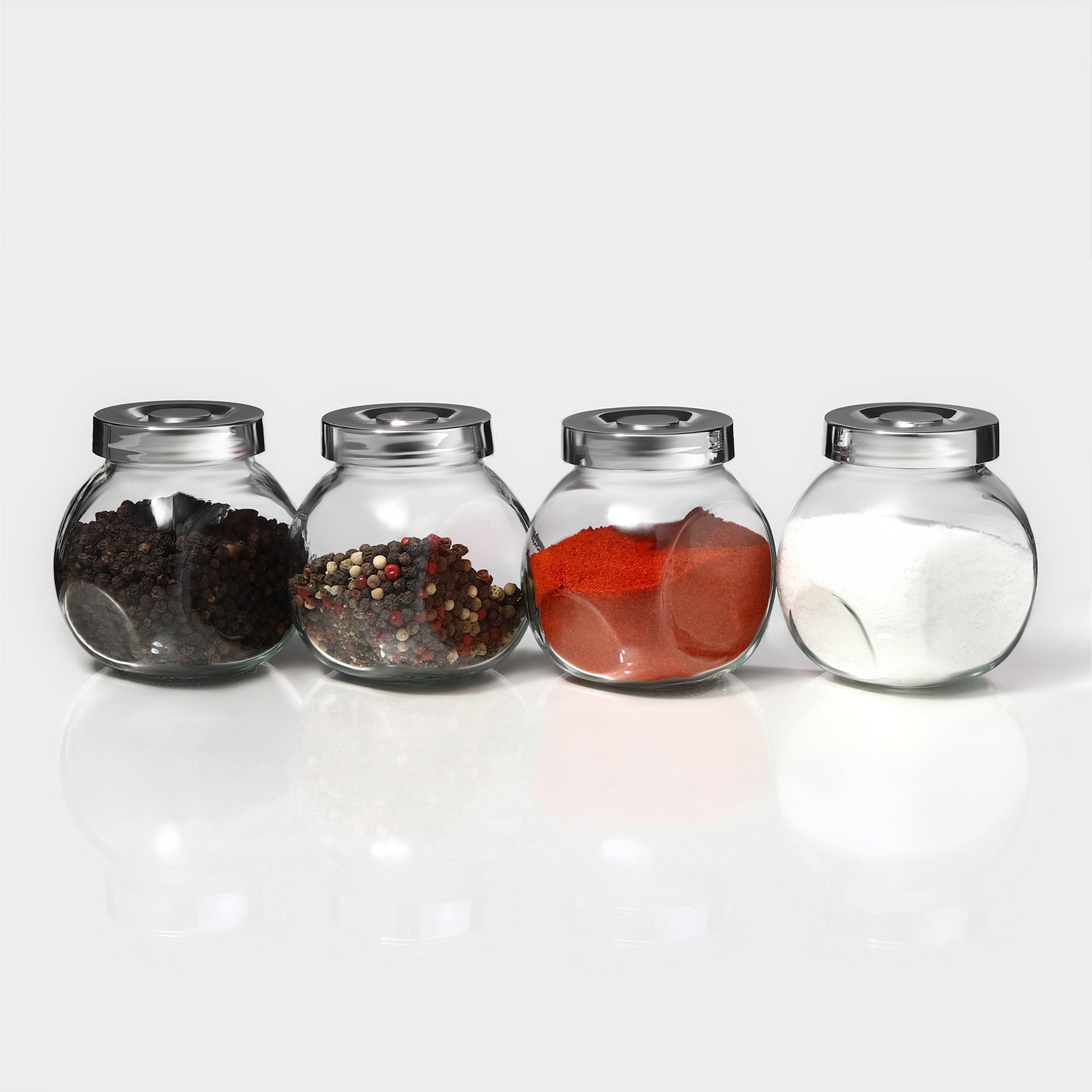 Банки стеклянные для хранения сыпучих продуктов «Блеск» — эти стильные ёмкости станут незаменимым помощником в организации порядка и поддержании чистоты. В наборе вы найдёте 4 банки с удобными пластмассовыми крышками, которые обеспечат надёжное хранение продуктов и защитят их от влаги, пыли и насекомых. Прозрачные стенки банок позволят вам легко увидеть содержимое, а благодаря компактным размерам они займут минимум места на вашей кухне. Банки изготовлены из высококачественного стекла, которое не впитывает запахи и легко моется. Они идеально подходят для хранения различных видов сыпучих продуктов, таких как крупы, макаронные изделия, специи, чай и многое другое.