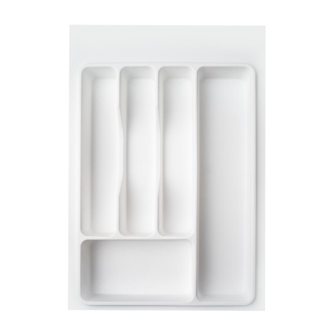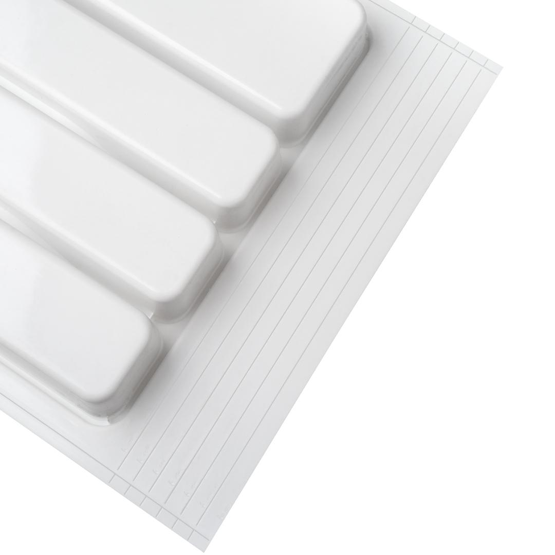 Универсальный обрезной лоток для столовых приборов в ящик корпуса 400мм. Насечки с трех сторон: по ширине разметка 310, 325мм, по глубине 424, 434,444, 454,464, 474, 485мм. Выполнены из ударопрочного экологичного полипропилена. Не имеют запаха. Выпускаются на собственном производстве. Каждое изделие имеет маркировку партии для контроля качества. Оптимальное решение для организации пространства в ящике. Стильные и продуманные емкости для столовых приборов с матовой бархатистой поверхностью, кроме приятных тактильных ощущений, гарантируют отличные эксплуатационные характеристики и снижение уровня шума. С обратной стороны поверхности нанесена линия реза по типовым размерам ящика. Изделия не требует специального ухода их достаточно протирать влажной тряпкой, губкой или легко вымыть водой.