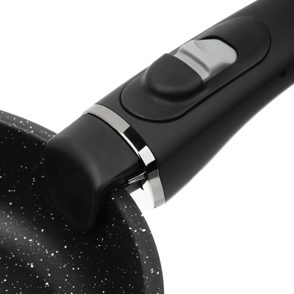 Набор посуды SATOSHI Нера из 4 предметов — это функциональное решение для ежедневного приготовления. В комплект входят ковш объемом 1,3 л и две сковороды (20 см и 24 см) с антипригарным покрытием Pfluon, рассчитанным на длительное интенсивное использование. Покрытие с «мраморным» эффектом обеспечивает легкость в приготовлении пищи с минимальным количеством масла. Главная особенность — съемная ручка, подходящая для всех предметов набора, что экономит место при хранении и упрощает использование в духовке. Эргономичная ручка с прорезиненным покрытием надежно лежит в руке, не нагревается и не скользит. Совместимость с любыми плитами, включая индукционные, делает набор универсальным для любой кухни.