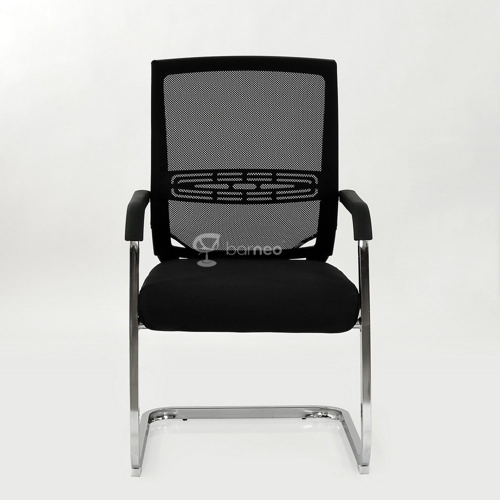 «Кресло Barneo K-801 черная ткань, черная сетка, на полозьях