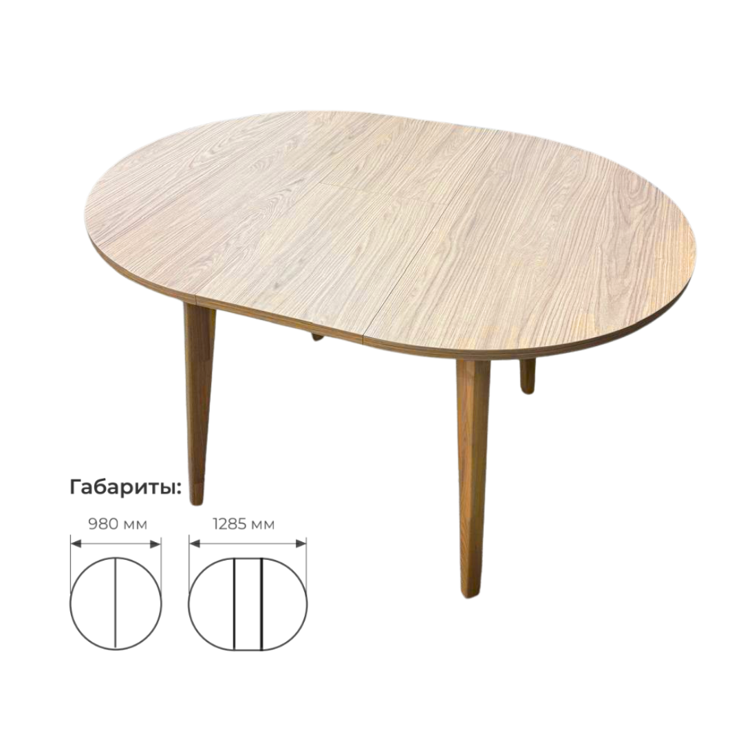 СИЕСТА, круглый раздвижной стол, (98+30)х98 см, дуб кассела 22мм, натуральный, М