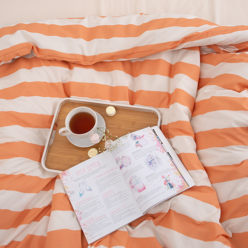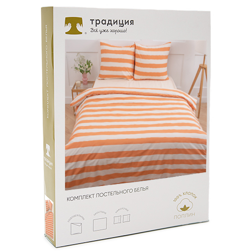 Комплект постельного белья «Традиция» изготовлен из набивного поплина плотностью 118 гр/кв.м. Поплин — хлопчатобумажная ткань, благодаря плотному переплетению нитей имеет высокую прочность и гладкость.Ткань мягкая и приятная к телу. Полотно, покорившее Европу, а за ней и весь мир, сегодня самый востребованный материал для постельного белья. Ткань не линяет, естественная усадка не превышает норму, обладает низкой сминаемостью, качество пошива фабричного уровня. Пододеяльник имеет прорезь, наволочки — клапан, простыня подшивается с 4-х сторон. Дизайн «Полоса Абрикос» входит в постоянную коллекцию. Пододеяльник и наволочки комплекта «Полоса Абрикос» сшиты из основной ткани, простыня — из ткани-компаньона, что придает белью особый стиль. Предложенная комплектация может незначительно отличаться от фотоизображения.