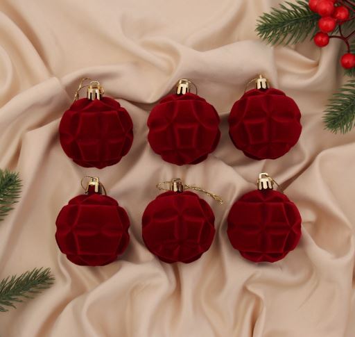 Новогодние шары насыщенного красного цвета — это базовый, но яркий элемент праздничного декора. Шесть пластиковых игрушек диаметром 6 см подходят для оформления ёлки в стиле новогоднего барокко или фьюжн. Такие украшения станут универсальной основой для создания уютной и торжественной атмосферы зимнего праздника.