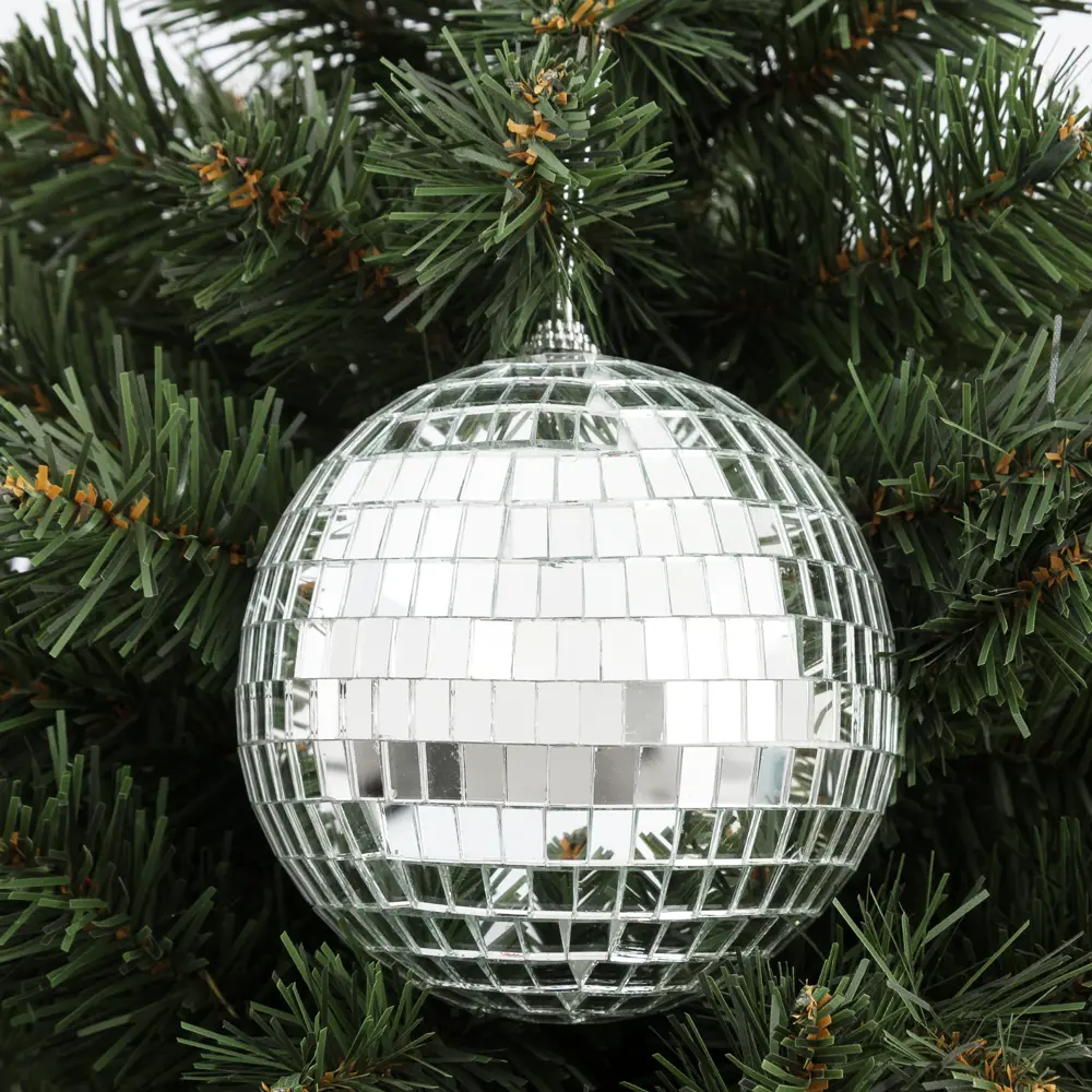 Елочный шар «Диско-шар» — оригинальное елочное украшение, которое станет прекрасным презентом друзьям, знакомым или даже самому себе. Классический елочный шарик украшен зеркальными вставками, отражаясь от которых световые лучики разбрасывают по стенам радужный фейерверк.