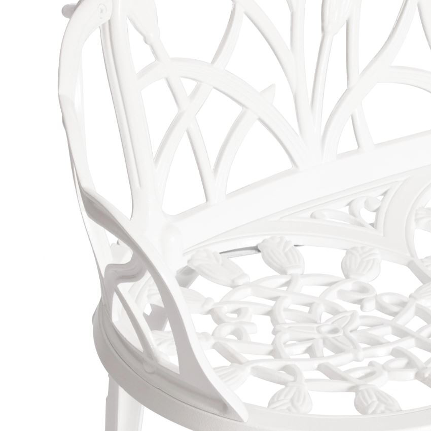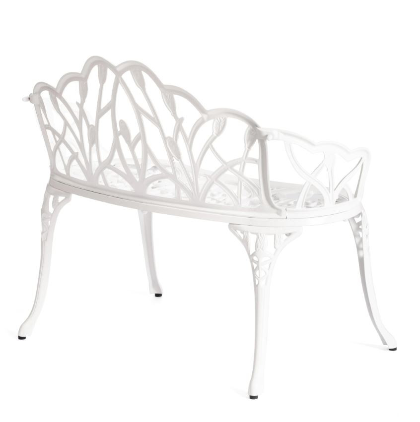 Уникальные кованые цветочные узоры, напоминающие тонкое кружево, придают модели особую декоративность и шарм. В сочетании с прочным каркасом из литого алюминия скамья выглядит дорого и элегантно, гармонично вписываясь как в классический, так и в современный ландшафтный дизайн.