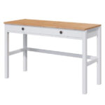 Стол выполнен из массива дерева — сосны, что гарантирует его прочность и долговечность. Благодаря своей функциональности, он может использоваться как компьютерный стол, школьный или офисный.
