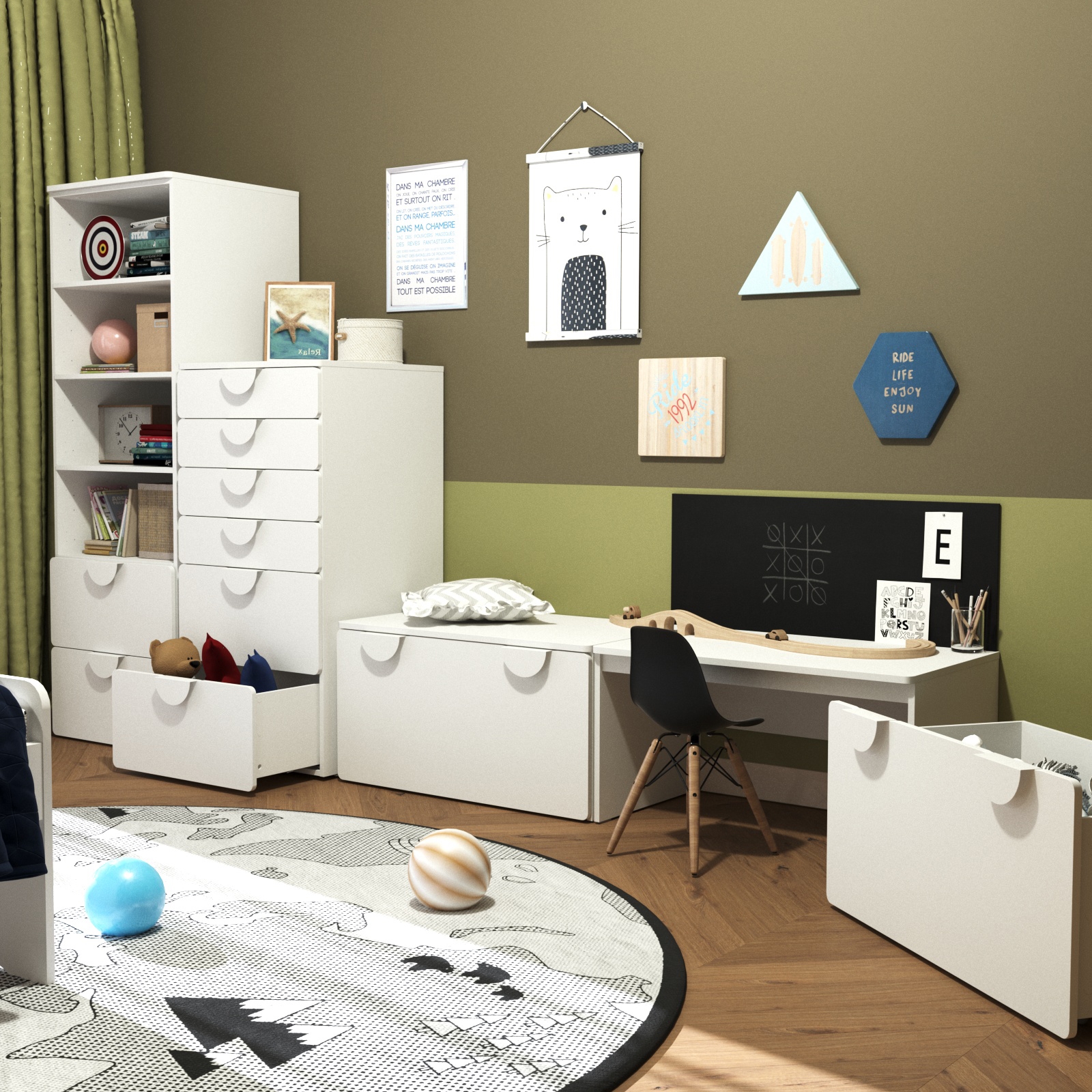 Изготовленный из прочного ДСП с безопасным эмалевым покрытием, ящик отличается долговечностью и простотой в уходе, соответствуя высоким стандартам качества детской мебели.