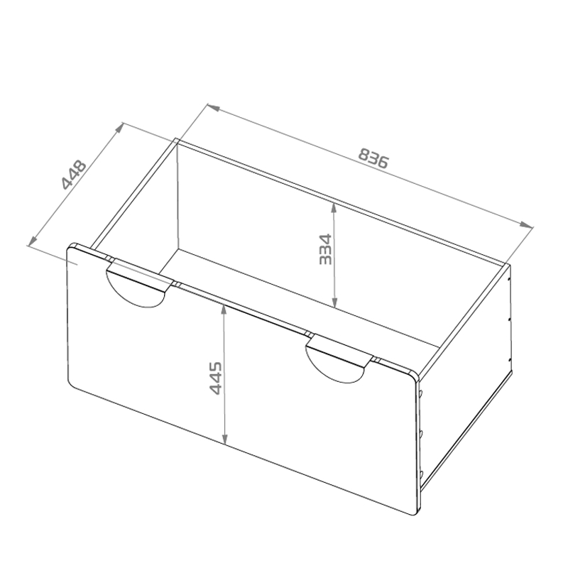 Накладные полукруглые ручки не только обеспечивают удобный захват, но и придают ящику оригинальный и стильный вид.