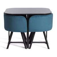 КВАТРО, обеденный комплект, стол и 4 стула, 100х100 см, черный/сине-бирюзовый