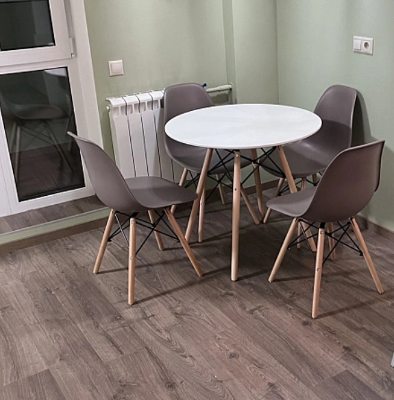 Этот круглый стол идеально впишется в любое пространство, будь то кухня, столовая или офис. Его столешница изготовлена из МДФ, материала, который славится своей крепкостью и стойкостью к повреждениям. МДФ также легко очищается от загрязнений, что сделает уход за столом простым и легким.