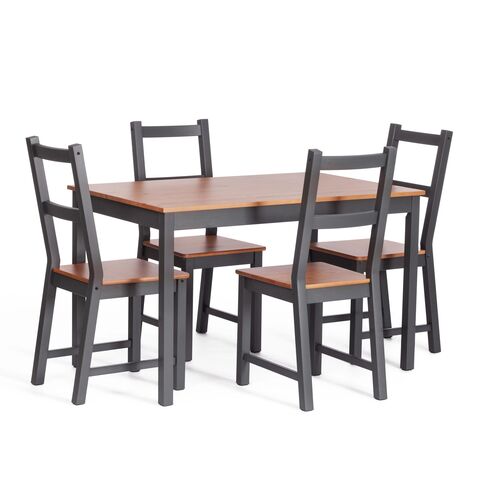 СОНАТА, обеденный комплект из массива сосны, стол и 4 стула, 120х75 см, антик/графит