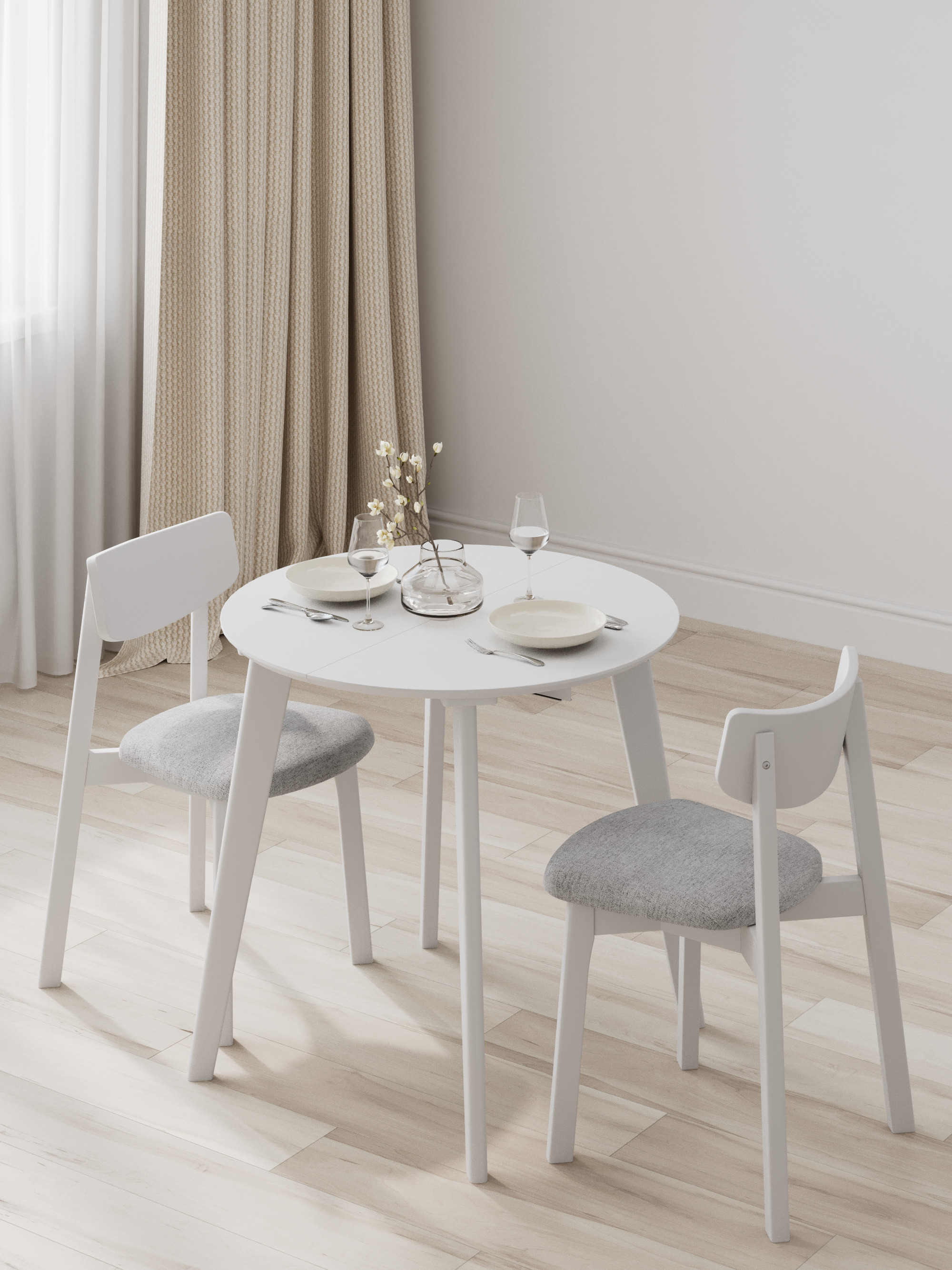 Изящное сочетание круглой столешницы и прямых опор - настоящая скандинавская функциональность!