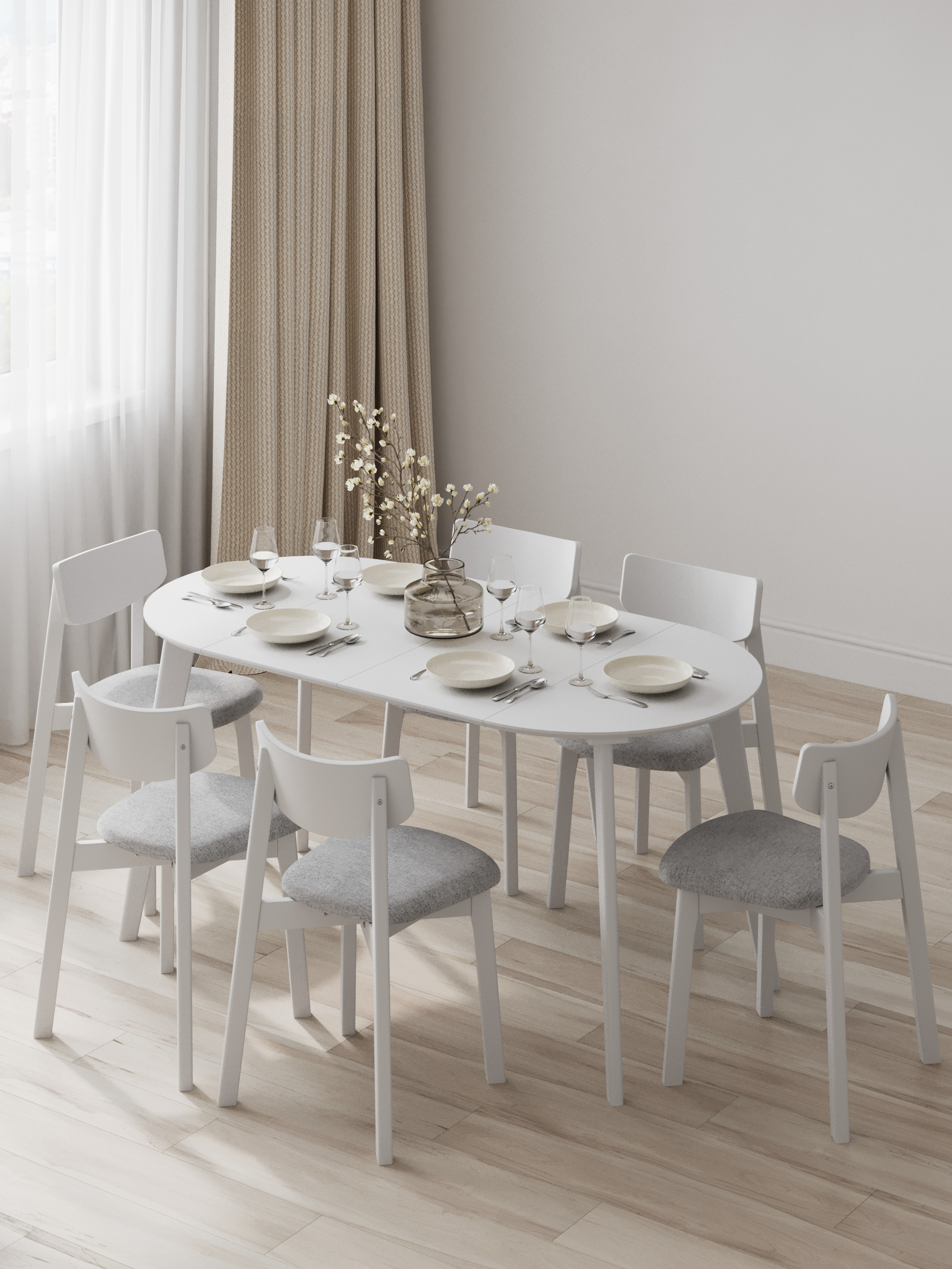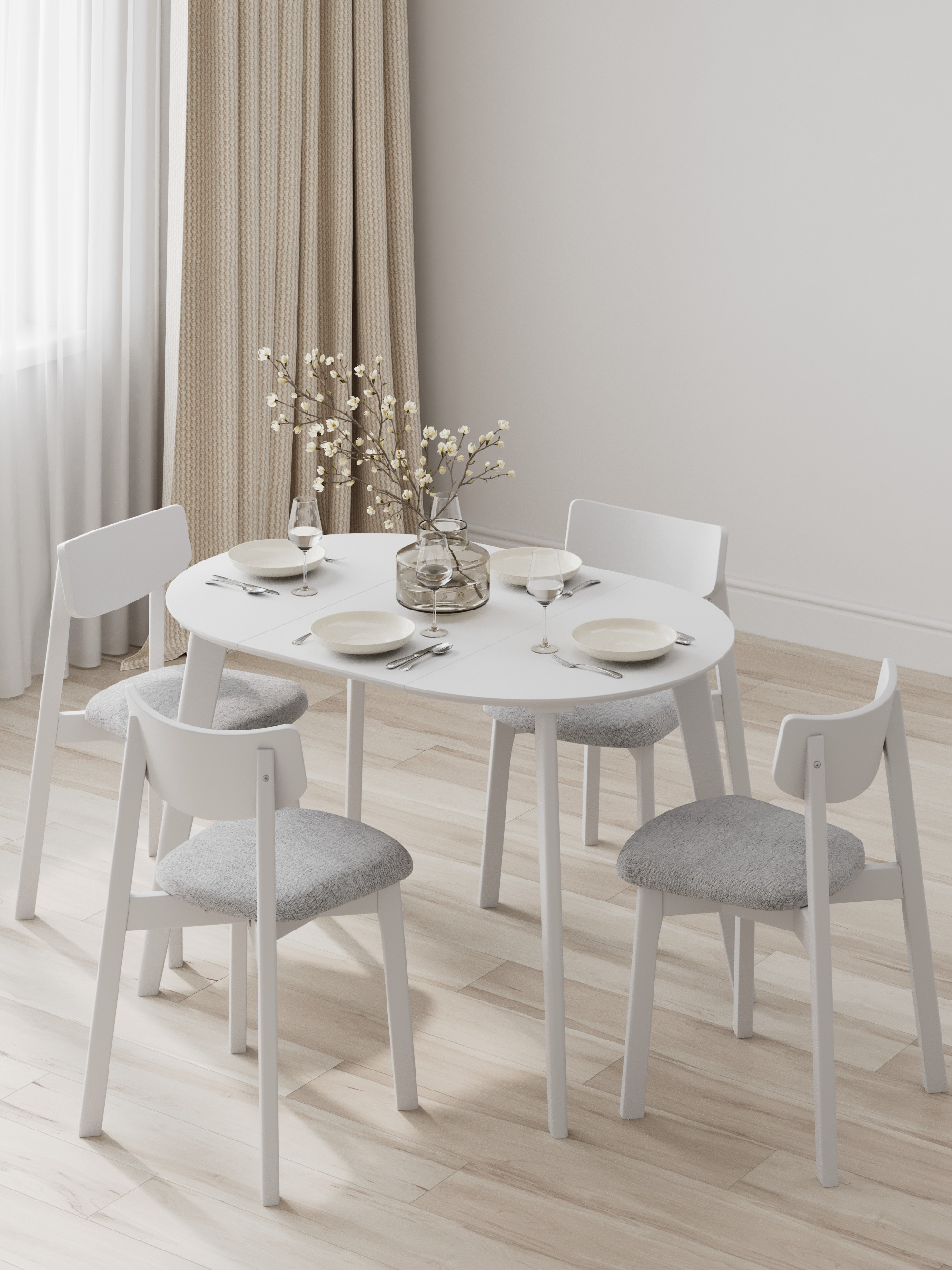 ОРИОН Compact+, стол раздвижной из массива березы, 80/120/160х80, белый