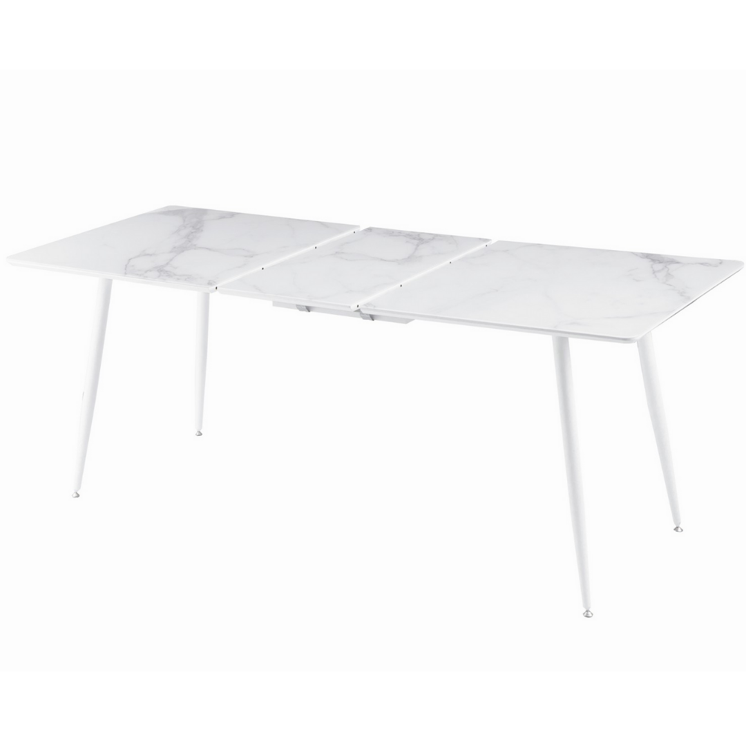 ВАВИЛОН, раздвижной стол, 140/180х80см, белый жемчуг стекло, опоры белые