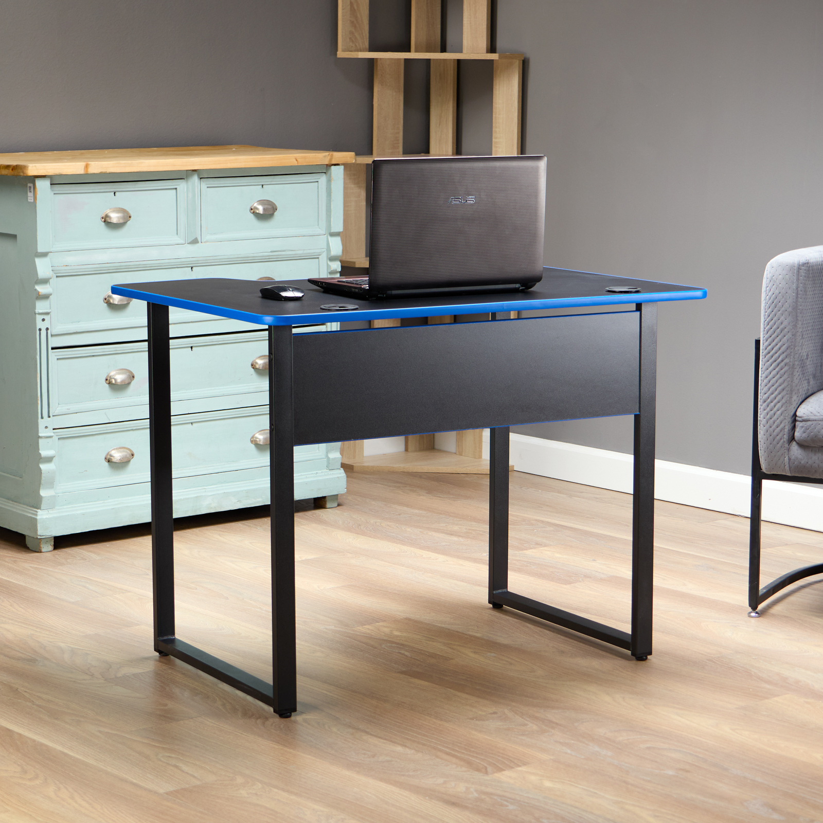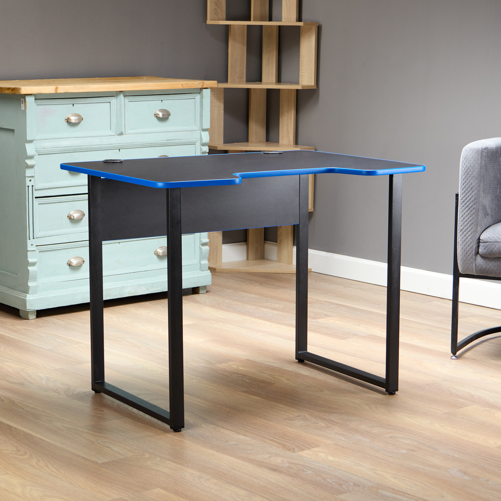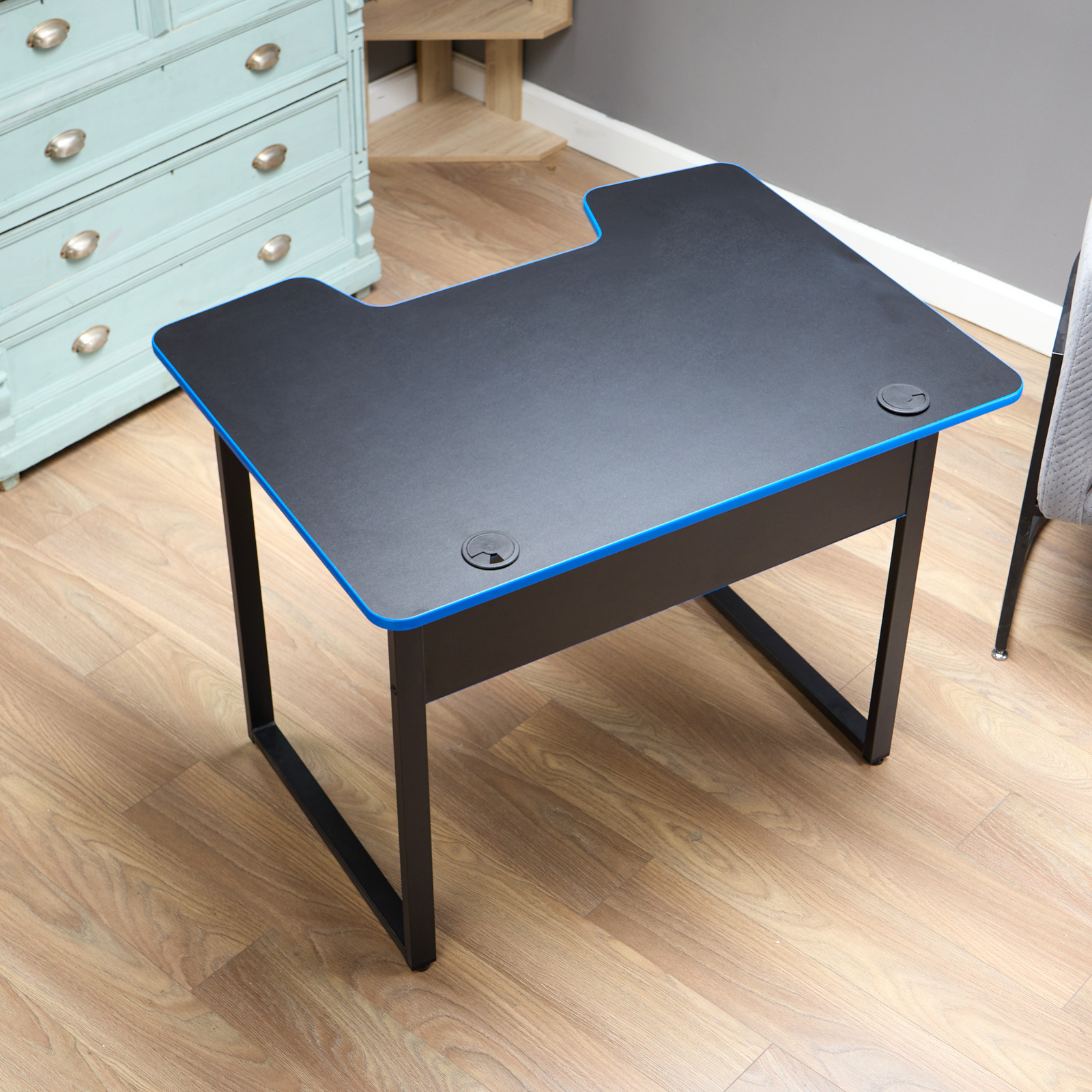 ЛАЙТ, стол игровой, 98х74 см, черный/синяя кромка