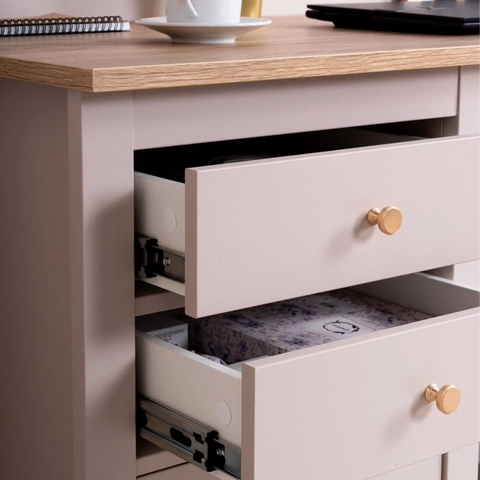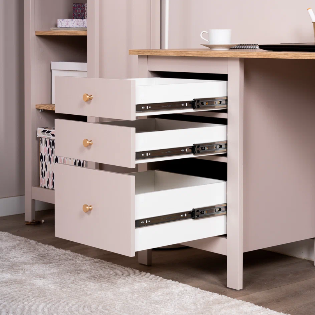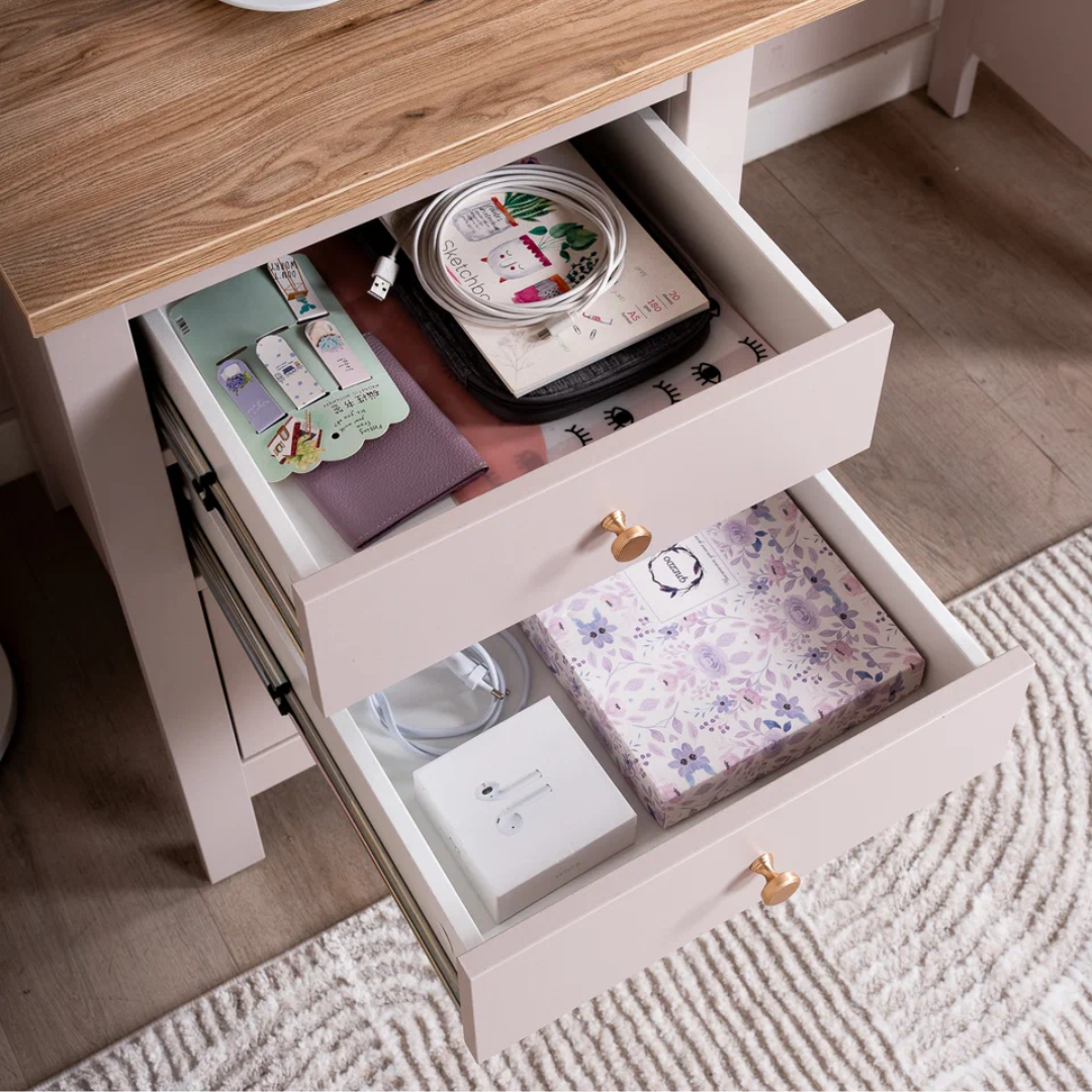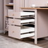 Стол оснащен тремя удобными выдвижными ящиками с направляющими полного выдвижения и доводчиками, которые обеспечивают плавное и бесшумное открывание. Эти ящики предназначены для хранения канцелярии, документов, учебников и других мелочей, которые всегда должны быть под рукой. Такое решение помогает поддерживать порядок и организованность, создавая комфортные условия для работы или учебы.