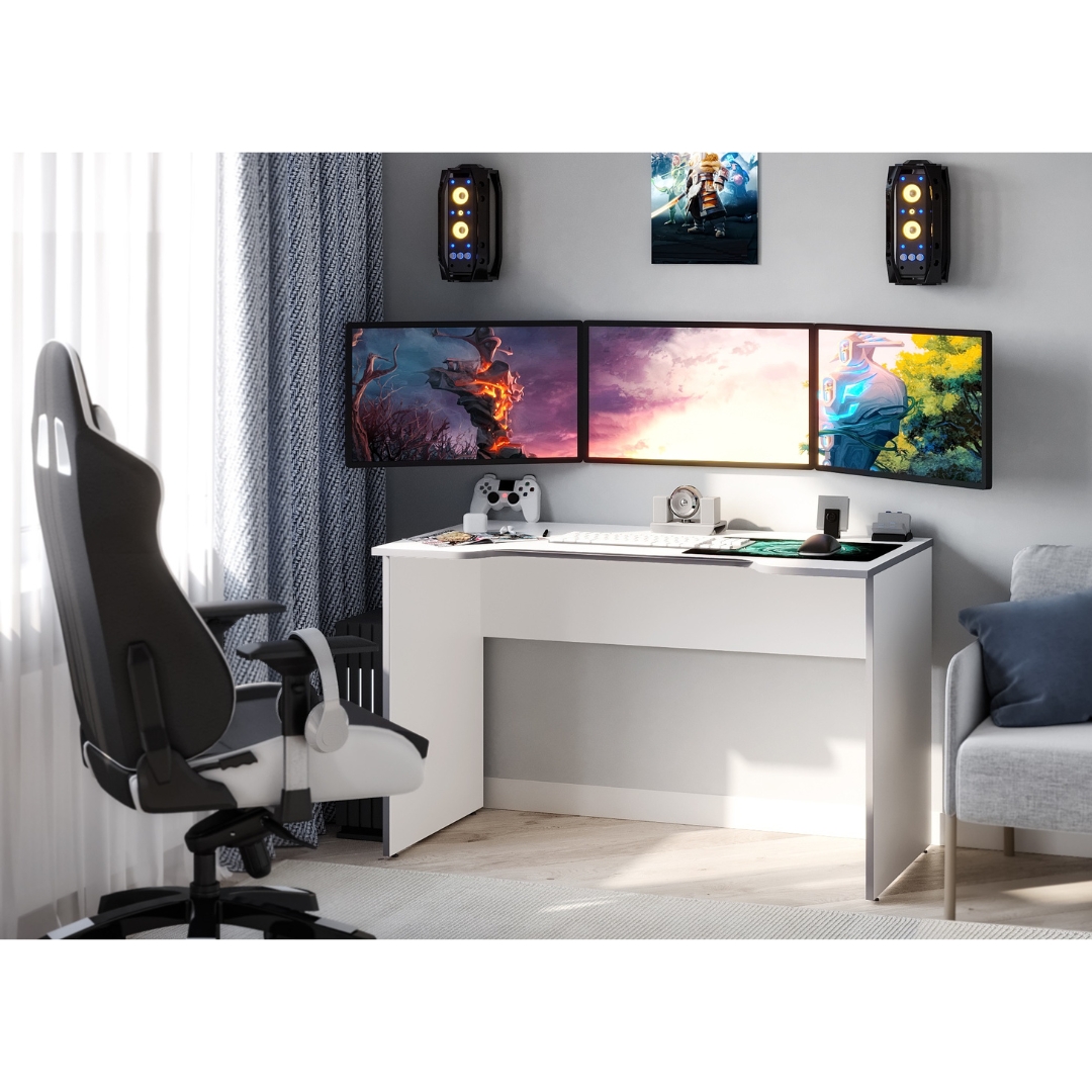При разработке этого стола мы постарались не только учесть удобство геймеров, но и создать и привнести важную компоненту внешней эстетики. Поэтому в конструкции достаточно много ломаных линий, замысловатый дизайн.