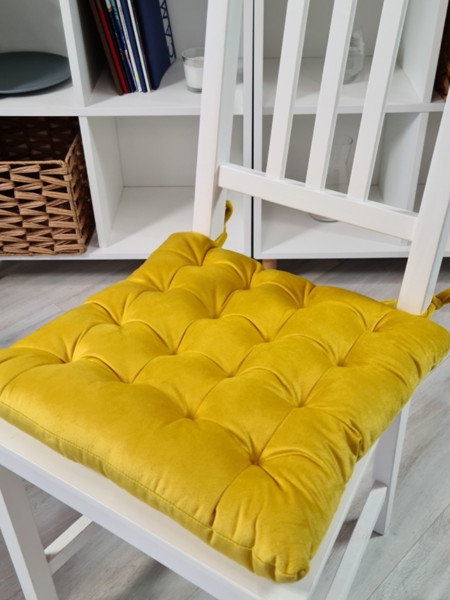 Сидушка Велюр - это мягкая подушка на стул из наполнителя полиэфирное волокно в чехле из плотной ткани. Удобное решение для стульев на кухне, а также для садовой мебели. Она также может быть стильным элементом декора для вашего дома и обеспечивает комфорт во время сидения на стуле с твердой поверхностью, а также защищает дерево или текстиль сиденья от загрязнений.