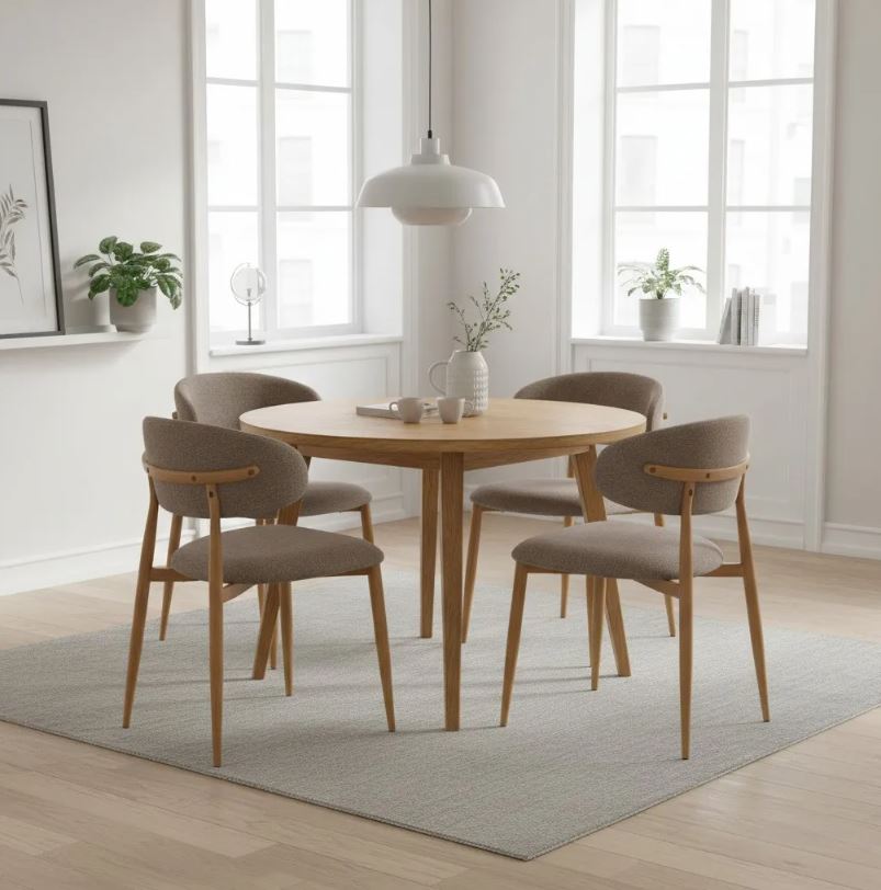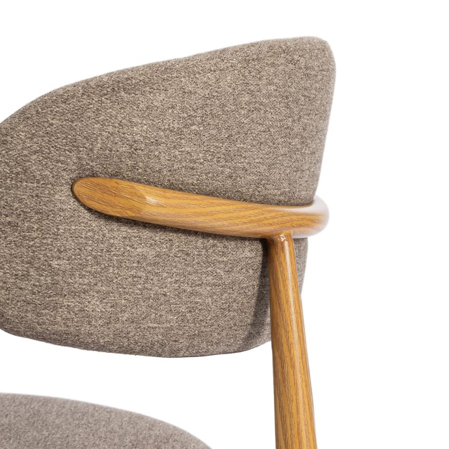 Обивка: Стулья обиты высококачественной тканью велюр меланж светло-коричневого цвета. Этот материал не только приятен на ощупь, но и обладает высокой износостойкостью, что гарантирует долгий срок службы стула. Обивка из текстурного велюра придает стулу особую глубину и теплоту, делая его еще более привлекательным.