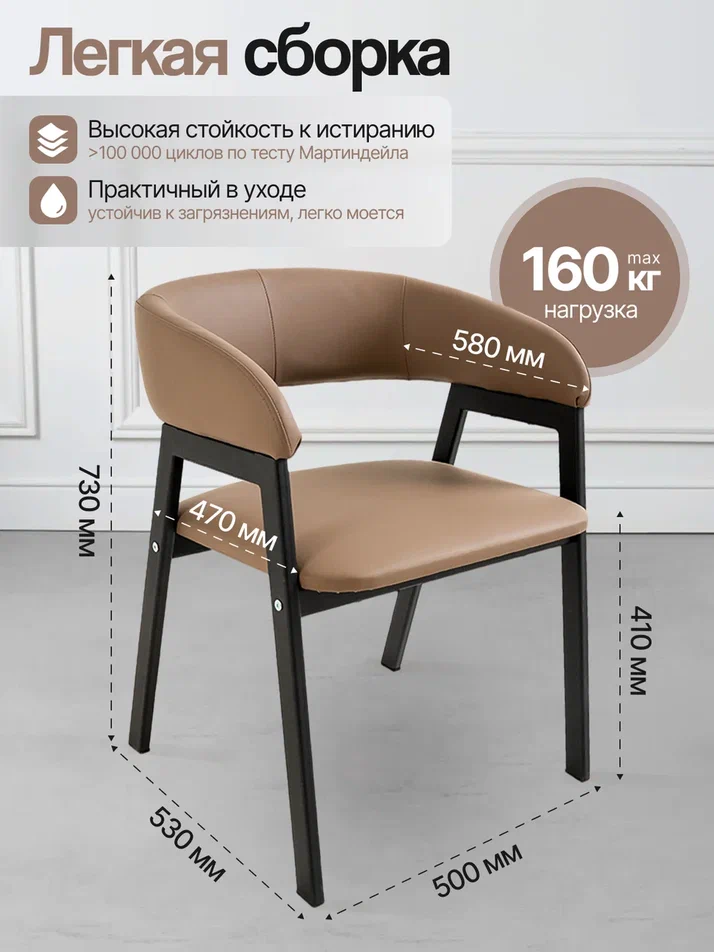 Удобная мягкая обивка гарантирует приятные тактильные ощущения, а премиальная кожа обеспечат долговечность и легкость в уходе. Вы сможете наслаждаться этим мягким креслом без лишних забот о его состоянии. Благодаря продуманной конструкции, стул легко справится с нагрузками и отлично подойдет для использования не только в доме, но и в общественных заведениях.
