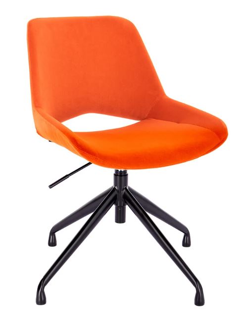 Комфорт и практичность: Подъемно-поворотный механизм позволяет легко регулировать высоту стула, а черная металлическая крестовина придает ему стабильность и надежность.