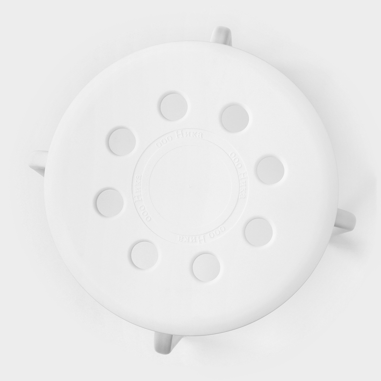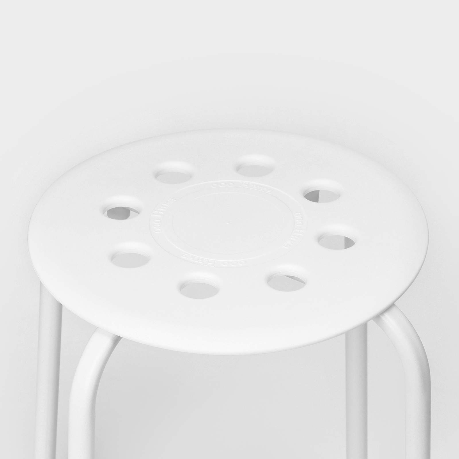 Табурет на четырёх опорах с пластиковым сиденьем. Материал сиденья не боится влаги и лёгок в чистке. Пластиковые колпачки на ножках защищают поверхность пола от царапин. Конструкция стула позволяет легко штабелировать несколько изделий.
