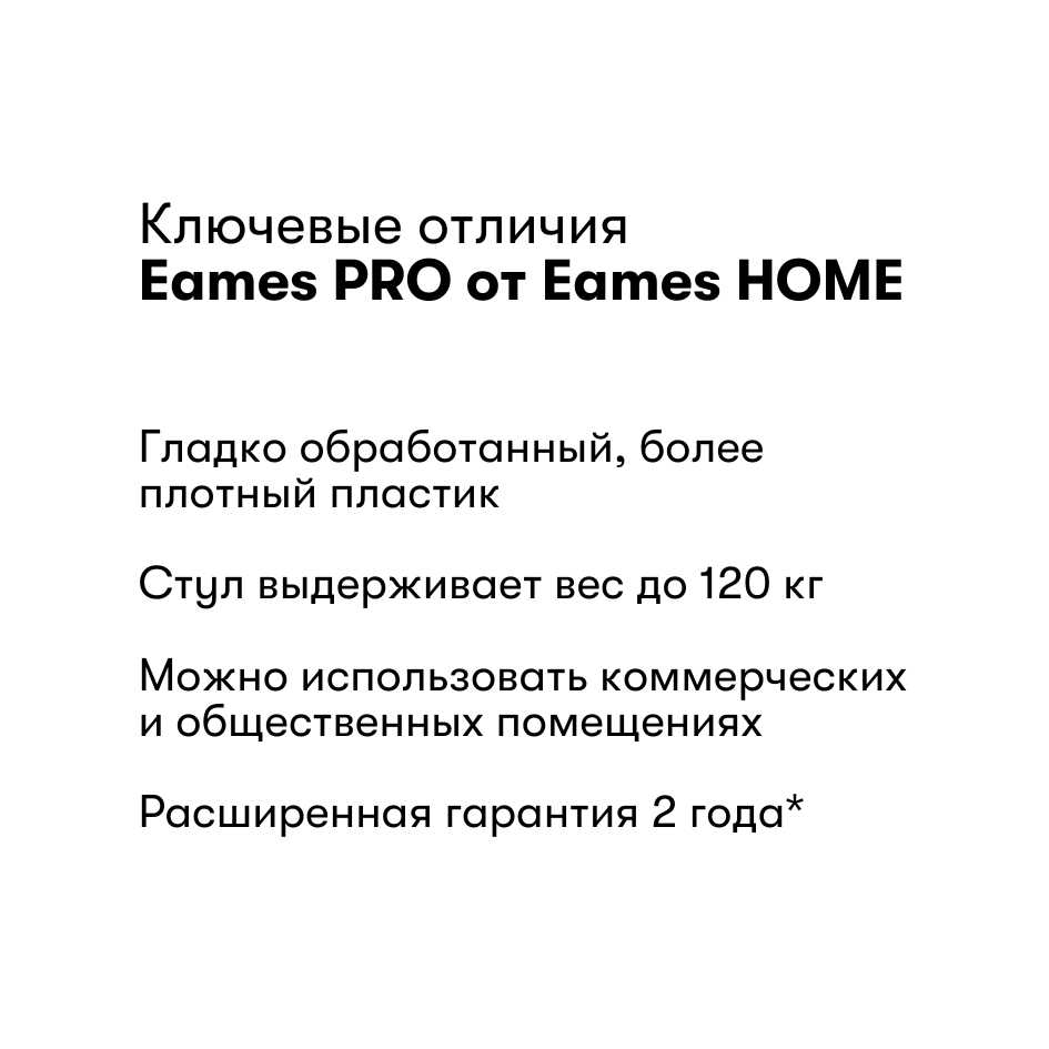 Стул Eames PRO - отлично подойдет для офиса, коммерческих помещений, кафе и фуд-кортов, арендных домиков и тд. Отличается от домашней версии Eames HOME улучшенными техническими параметрами и расширенной гарантией 2 года*