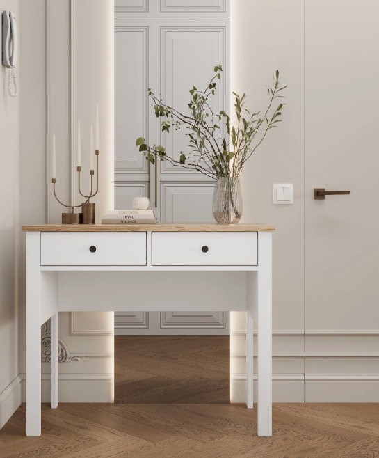 Туалетный / письменный стол САГА 92х45 см — это изящное и функциональное решение для организации комфортного места для мейкапа, работы или учебы.
