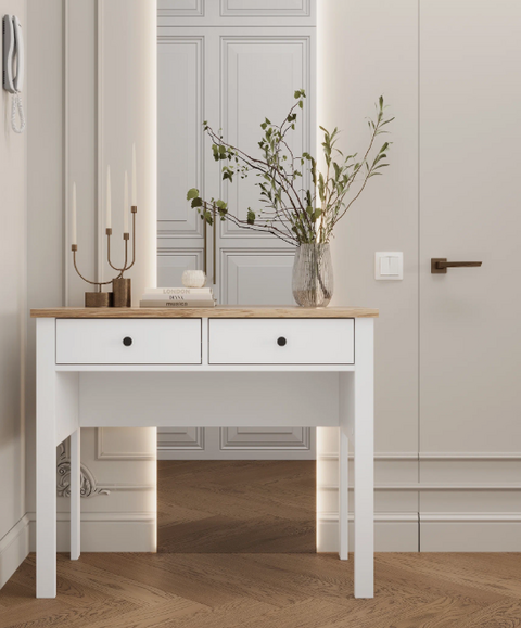 Стол оснащен двумя удобными выдвижными ящиками с направляющими полного выдвижения и доводчиками, которые обеспечивают плавное и бесшумное открывание. Такое решение помогает поддерживать порядок и организованность, создавая комфортные условия.