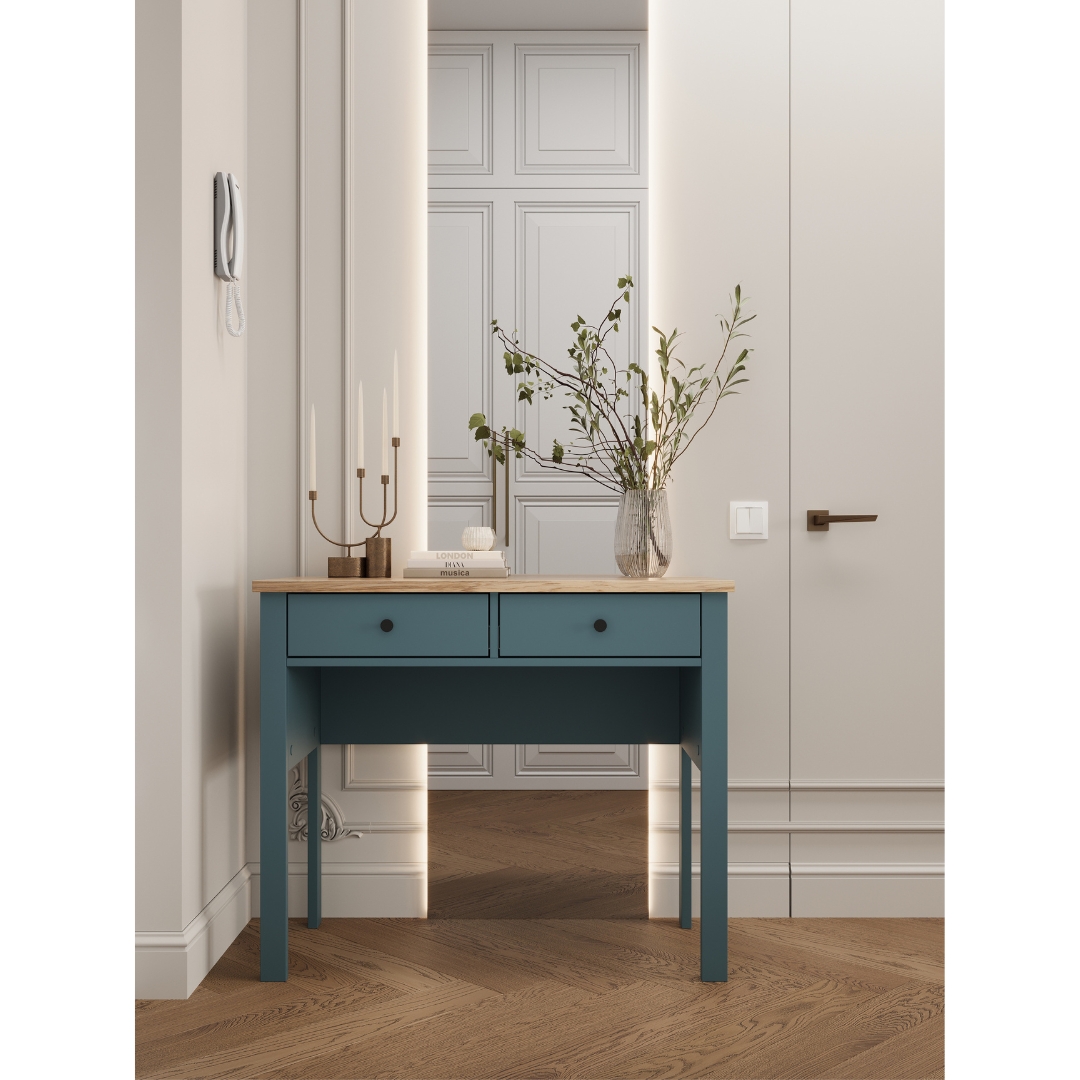 Стол оснащен двумя удобными выдвижными ящиками с направляющими полного выдвижения и доводчиками, которые обеспечивают плавное и бесшумное открывание. Такое решение помогает поддерживать порядок и организованность, создавая комфортные условия.